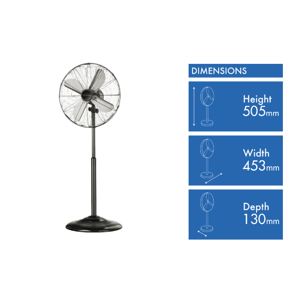 Bring refreshing breezes to any room in your home with the Kambrook 46cm Gunmetal Pedestal Fan. With its sleek grey finish and sturdy pedestal base this fan makes a stylish statement while keeping you cool. The 40cm blades generate powerful airflow you can direct where you need it most thanks to the tilt adjustment and easy twist controller with 3 speed settings. Stay comfortable in the summer heat with the carry handle that makes it easy to move this fan from room to room. The fan offers versatile cooling and decor options with features like the sturdy pedestal base that elevates airflow. Don't sweat through another hot day let the Kambrook pedestal fan keep your home breezy and comfortable all summer long. The manufacturer's part number for this product is KPF449GUN. Bring home efficient and stylish cooling with the Kambrook 46cm Gunmetal Pedestal Fan today.