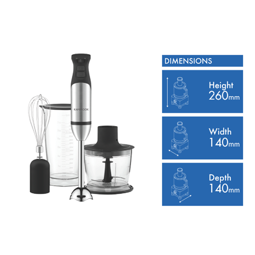 This Kambrook hand blender has a stainless steel blade. It has a 0.7 litre capacity allowing you to blend many things at once. The Kambrook KSB655BSS2JAN1's dishwasher safe parts let you spend time on blending instead of washing. You can change up your kitchen's look with its stainless steel finish. You can quickly make smoothies sauces and more thanks to this Kambrook stick mixer.