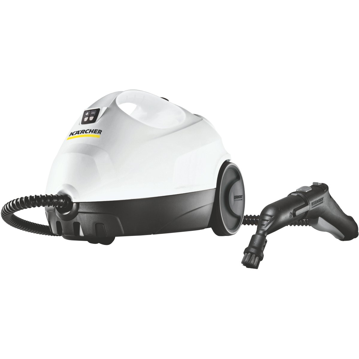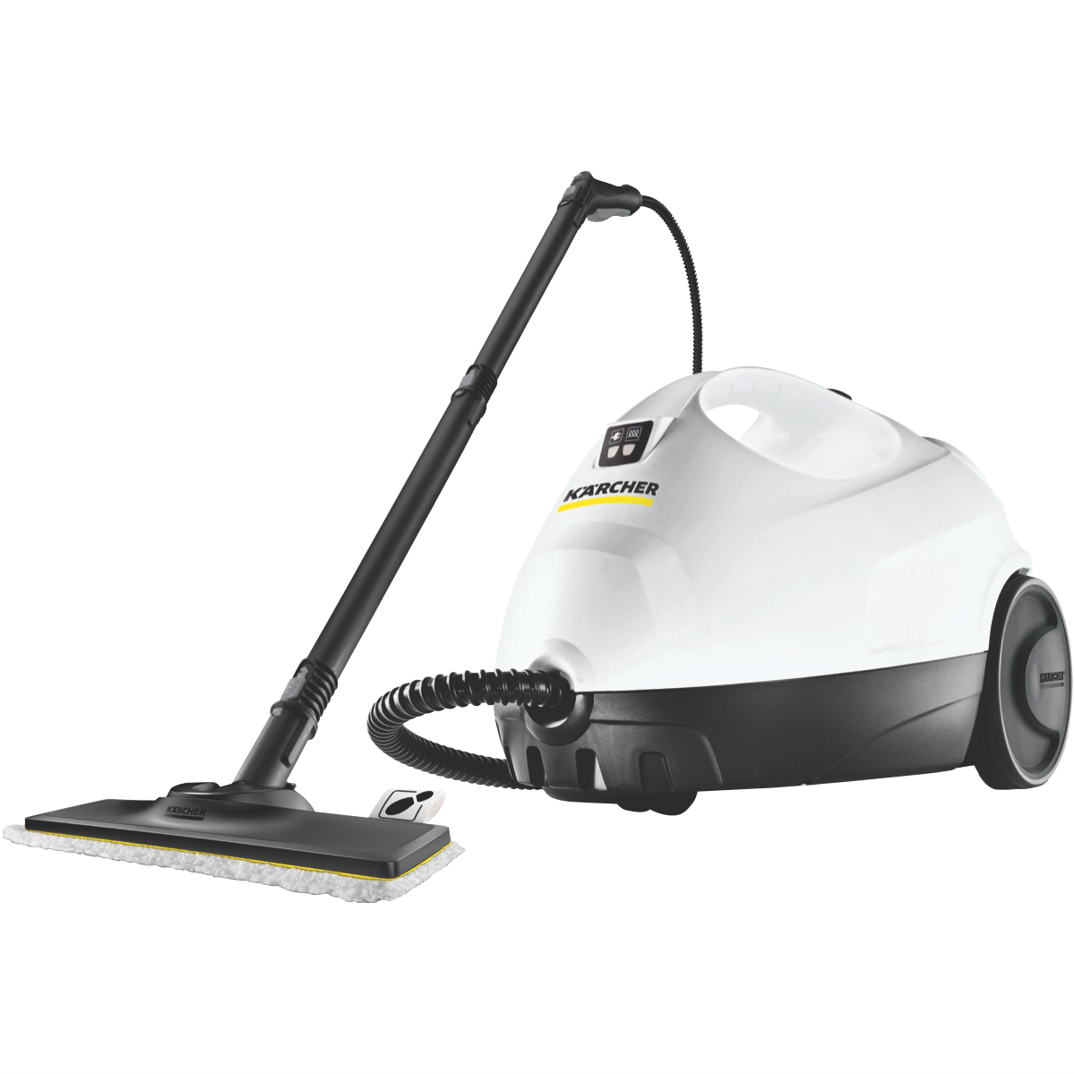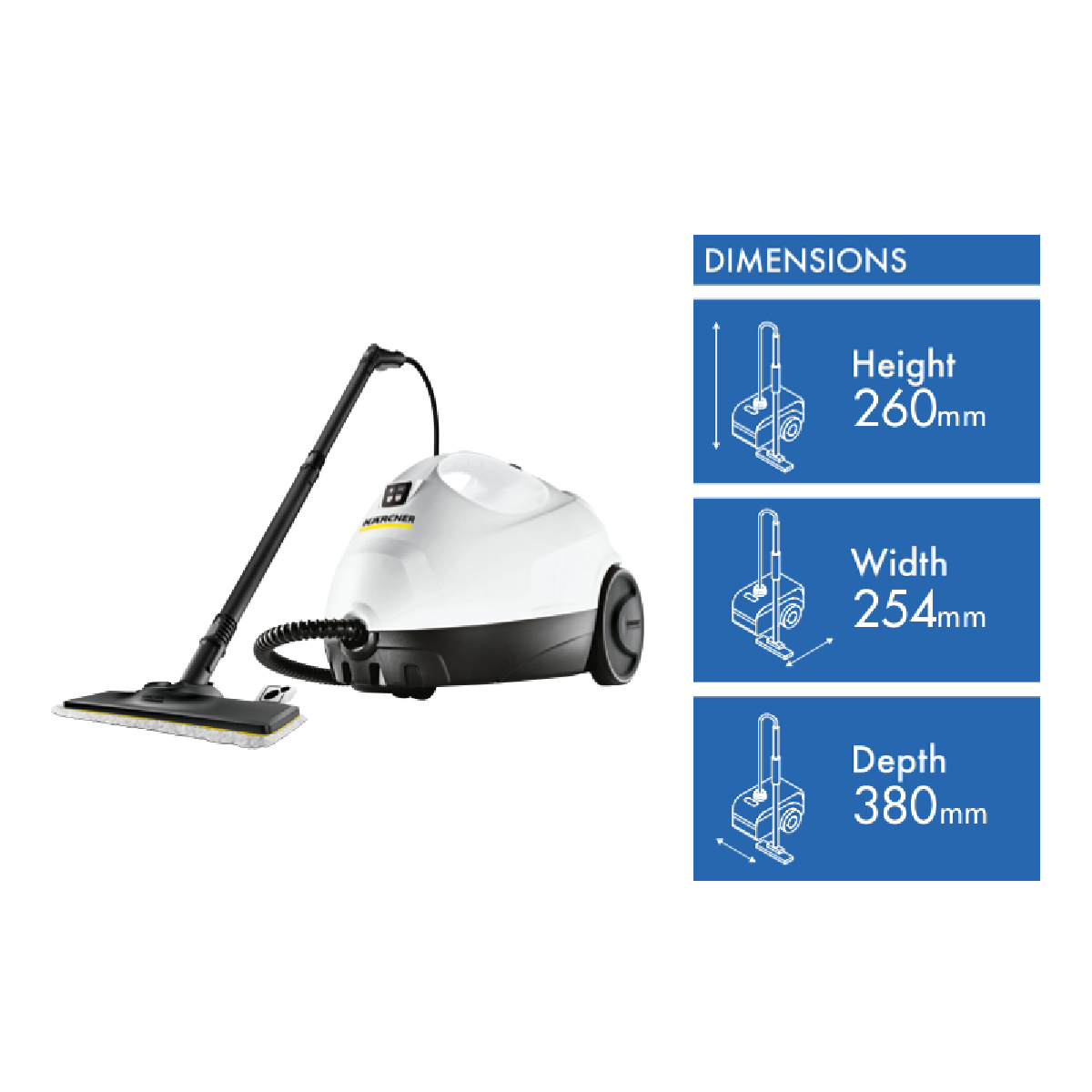 Effortlessly tackle household cleaning tasks with the Karcher SC2 Steam Cleaner Easy Fix. This versatile steam cleaner boasts a generous 1L tank capacity delivering powerful steam at 3.2 Bar pressure to effectively clean and sanitize a variety of surfaces including floors taps wash basins wall tiles windows mirrors and extractor hoods. With a convenient 4m cord length you can easily maneuver the SC2 Steam Cleaner throughout your home without the hassle of frequent plug changes. The childproof safety lock provides peace of mind ensuring that curious little hands can't accidentally operate the unit. Enjoy the convenience and efficiency of chemical-free cleaning with the Karcher SC2 steam mop leaving your surfaces sparkling clean and hygienic. The manufacturer's part number for this product is 1.512-608.0. Experience the difference of steam cleaning with the Karcher SC2 Steam Cleaner Easy Fix backed by a reassuring 2-year manufacturer's warranty.