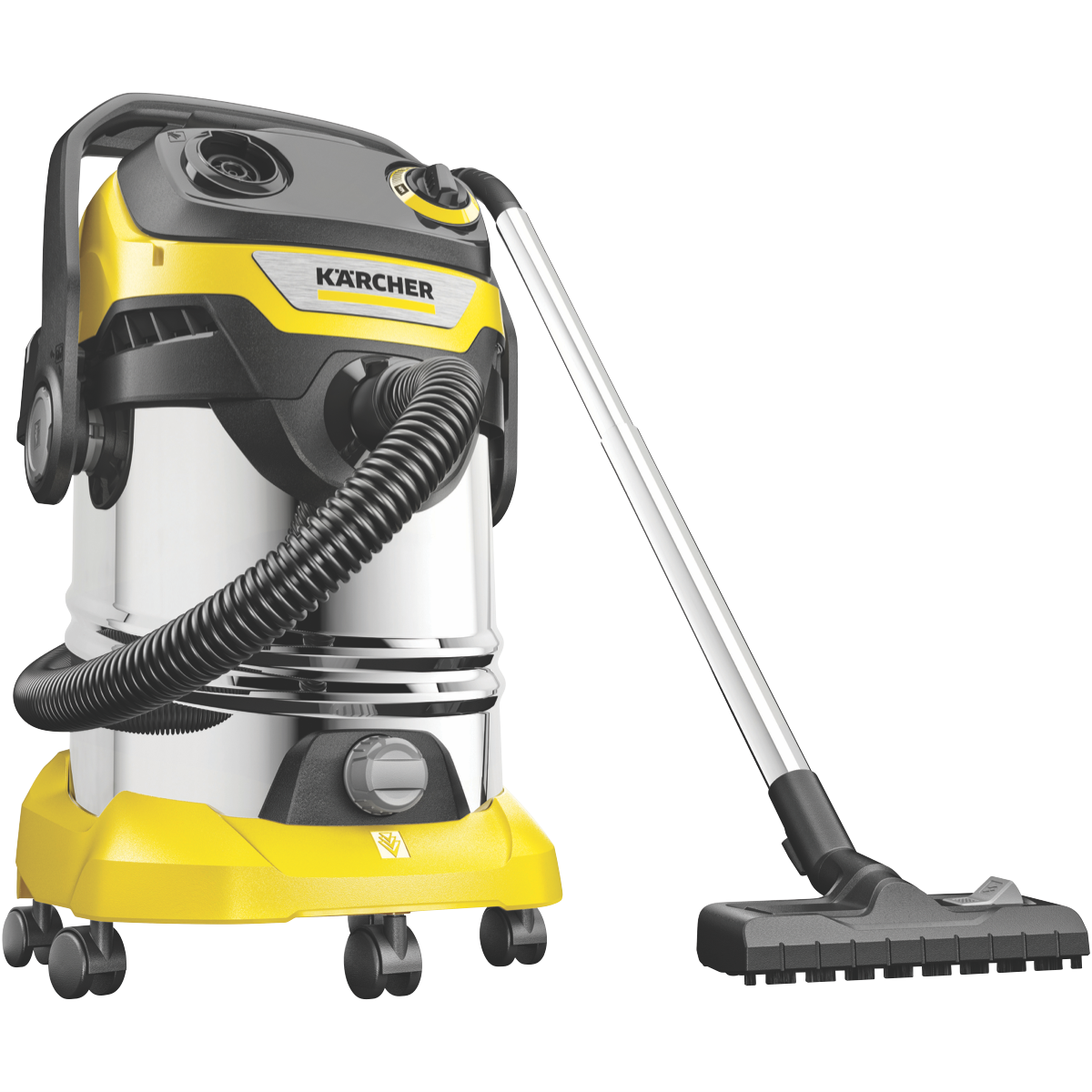 Take on tough messes with the Karcher WD5 S Wet & Dry Vacuum Cleaner. This bagless stainless steel barrel vacuum packs powerful 1100 watt suction for quick cleanups in garages workshops and outdoor areas. The robust 30 liter capacity handles both wet and dry debris while the removable handle with electrostatic protection keeps you safe. Tackle renovation projects car interiors cellars and entranceways with the bundled accessories - suction hose tubes wet/dry nozzle crevice tool and fleece filter bag. Karcher engineering brings durability and versatility so you can vacuum up large volumes of water or tidy dry dust and dirt. The two year warranty provides peace of mind. With 1100 watts of cleaning power a generous 30 liter capacity and versatile wet and dry pickup the Karcher WD5 S Vacuum handles tough tasks. 1.628-369.0 is the manufacturer's part number for this product. Discover its cleaning potential today.