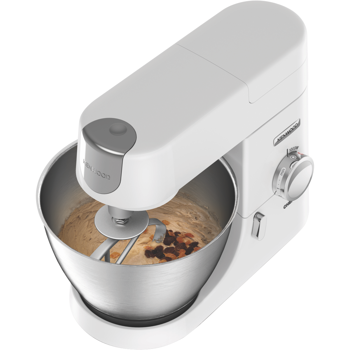 Revolutionize your kitchen with the Kenwood Chef Kitchen Machine White a powerful stand mixer that will become your culinary companion for years to come. This versatile appliance features a robust 1000W motor and variable speed control to effortlessly knead dough beat cake batters and whip cream with precision. The die cast brushed metal construction provides durability for daily use while the 4.6L stainless steel bowl handles large batches with ease. With the aluminium K-beater stainless steel whisk and aluminium dough tool included you'll have all the attachments needed to mix blend and stir ingredients. Designed for stability the Kenwood Chef has a wide base and weighs 7.3kg to stay planted on your countertop during use. The splashguard minimizes messes so you can confidently create masterpieces. Cleanup is a breeze as the bowl is dishwasher safe. Unleash your inner chef with the Kenwood Chef Kitchen Machine White and craft delectable delights for the whole family. The manufacturer's part number for this product is KVC3100W. Bring home this versatile stand mixer and see how it can inspire your cooking today.