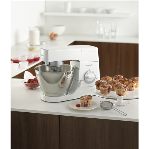 Experience the power and versatility of the Kenwood Kenwood Classic Chef Size Stand Mixer in white with silver trim. With a generous 4.6L stainless steel bowl and 800 watt direct drive motor this mixer makes quick work of baking tasks. The variable speed control with pulse function lets you precisely mix everything from sticky dough to fluffy egg whites. Attach the included dough hook K-beater or whisk to tackle any recipe. The Kenwood Classic's total mixing action ensures thorough ingredient incorporation. Dual outlets provide optimized speeds for adding ingredients. Mix blend and knead effortlessly with the durable die-cast aluminium and plastic construction. Top rack dishwasher safe parts make clean up a breeze. Prepare family sized batches and culinary creations with ease. This high performing mixer simplifies baking so you can create delectable cakes breads and more. The manufacturer's part number for this product is KM336. Bring home the Kenwood Classic Stand Mixer and enjoy the delicious results.