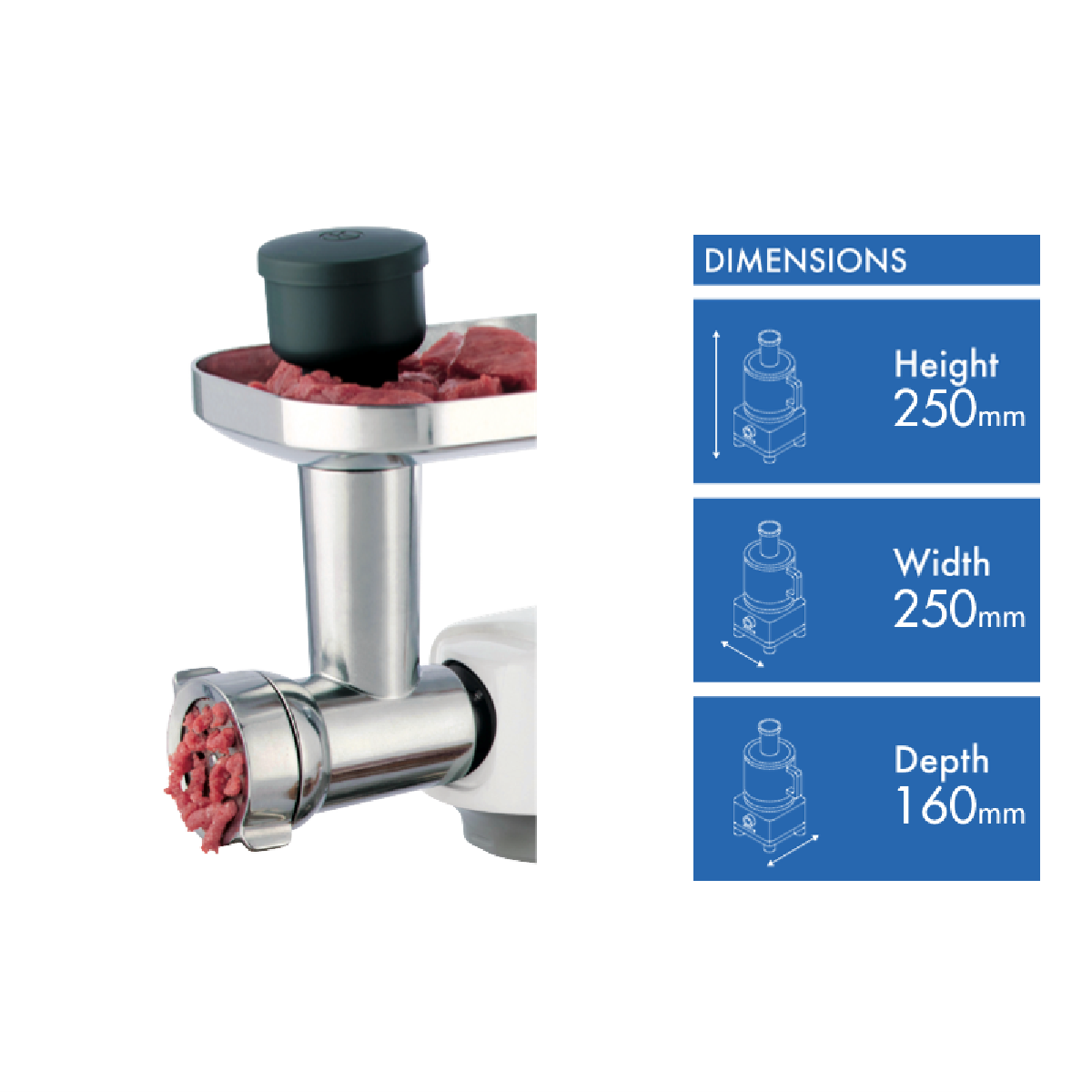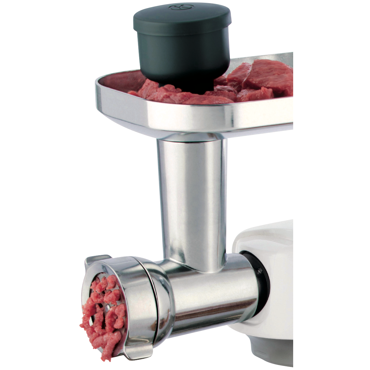 Make juicy homemade meat patties with the Kenwood Multi-Food Grinder attachment. Easily fit the Kenwood KAX950ME attachment onto your compatible Kenwood stand mixer* to grind your own meat and prepare a large variety of dishes right from home. This multi-food grinder features three inclusive screens: fine (3mm) medium (4.5mm) and coarse (8mm) so you can grind meat fish vegetables and even cheese. It also includes a sausage and kebbe maker attachment for fresh and healthy homemade sausages and traditional lamb kebbe. Perfect your home cooking with the Multi-Food Grinder.*compatible with Kenwood Stand Mixers: KMX754RD KVL4100S KVL6100T