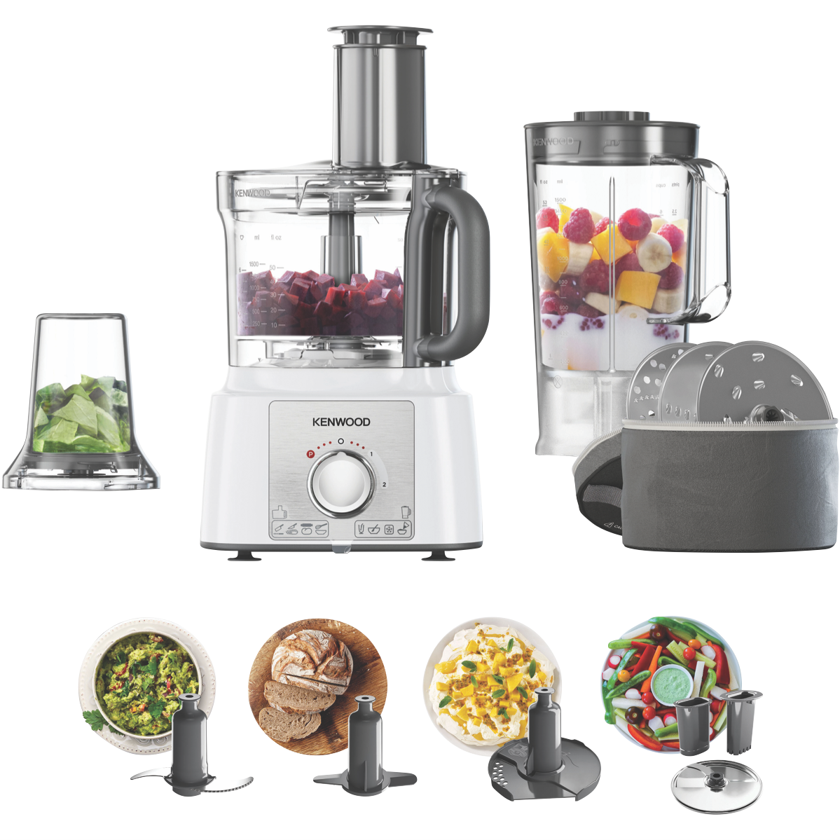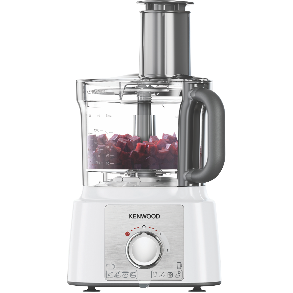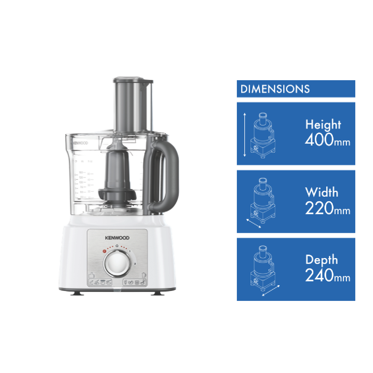 Experience the versatility and power of food preparation with the Kenwood Multipro Express Food Processor. This sleek white food processor with a stainless steel panel makes quick work of all your slicing dicing mixing and blending needs. With a generous 3L bowl 1000W motor and 2 speeds plus pulse function you can whip up anything from sauces to doughs in minutes. The MultiPro range is designed for families with accessories like the Express Dice for uniform cubes slicer discs for veggies a blender for smoothies and a spatula for scraping every last bit from the bowl. Cleaning up is a breeze too as all parts are dishwasher safe. Weighing only 3.9kg the Multipro Express is compact enough to store in any kitchen. With thoughtful touches like a storage bag for accessories Kenwood proves food prep can be fuss-free. From chopping nuts to whipping cream or blending a batch of muffins this do-it-all food processor simplifies cooking for the whole family. Treat yourself to faster healthier homemade meals with the Kenwood Multipro Express. The manufacturer's part number for this product is FDP65740WH.
