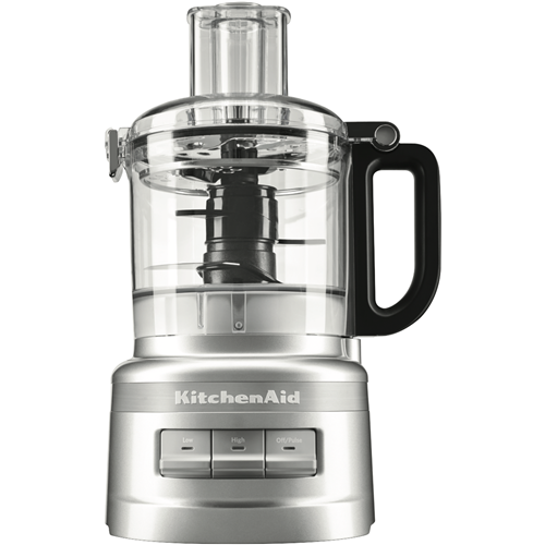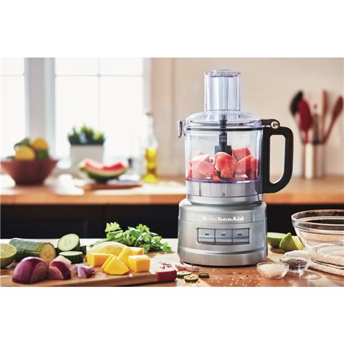 Bring the power of a professional kitchen into your home with the KitchenAid 7 Cup Food Processor. With its sleek silver finish and compact design this versatile food processor is perfect for chopping slicing shredding mixing and pureeing ingredients with precision and ease. The 250 watt motor and 2 speed settings plus pulse provide optimal control for processing anything from soft fruits to hard cheeses. It comes equipped with a 7 cup work bowl multi-purpose blade dough blade reversible disc for slicing and shredding and more. Weighing only 3kg it won't take up much space on your kitchen counter. With BPA free components and a 2 year warranty you can feel confident creating culinary masterpieces for years to come. From dicing onions to kneading dough this food processor makes cooking quick and enjoyable. With the KitchenAid 7 Cup Food Processor you'll have a powerful reliable assistant by your side in the kitchen. The manufacturer's part number for this product is 5KFP0719ACU. Bring your cooking game to the next level and explore all that this versatile food processor has to offer.