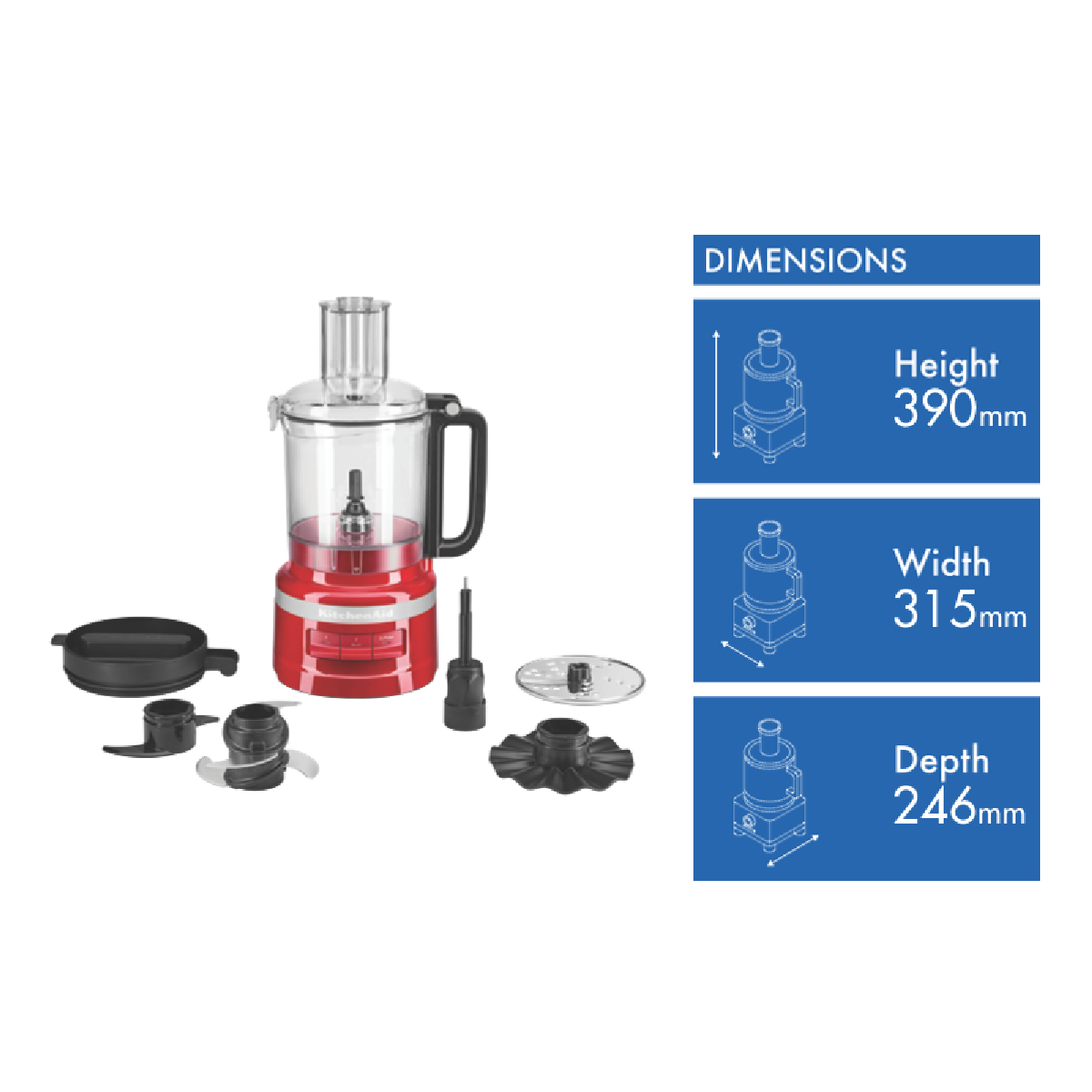 KitchenAid 9 Cup 1L Food Processor Empire Red