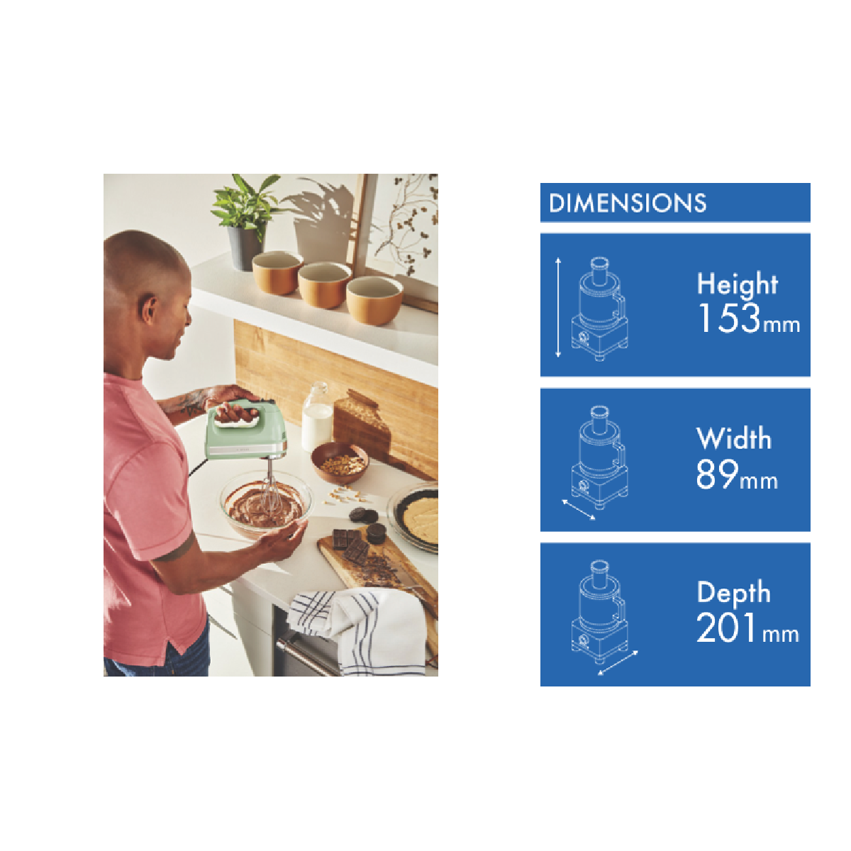 Dishwasher Safe Dishwasher safe stainless steel beaters, the addition of a pro whisk, dough hooks and liquid blending rod