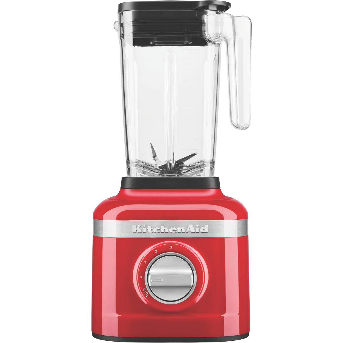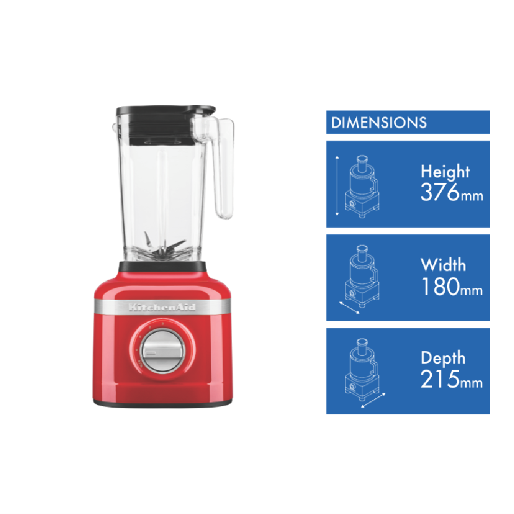 This striking eye-catching KitchenAid Empire Red Blender will become the vibrant focal point of your kitchen. Blend crush chop puree and liquefy ingredients with precision and power using the blender's asymmetric stainless steel blades and 3 variable speeds including a pre-set Ice Crush program. The 1.4L BPA-free plastic jar ensures you can make up to 6 serves of your favorite soups smoothies and more. With a generous 650 watts of power safety locking lid pulse function for controlled processing and self-cleaning cycle this blender makes light work of food prep. Designed for durability with a sturdy plastic and metal construction the blender measures 180mm wide x 376mm high x 215mm deep and weighs 3.17kg. The KitchenAid blender comes with a 1-year warranty for peace of mind. The manufacturer's part number for this product is 5KSB1325AER. Bring home this versatile high-powered blender to enhance meal preparation today.