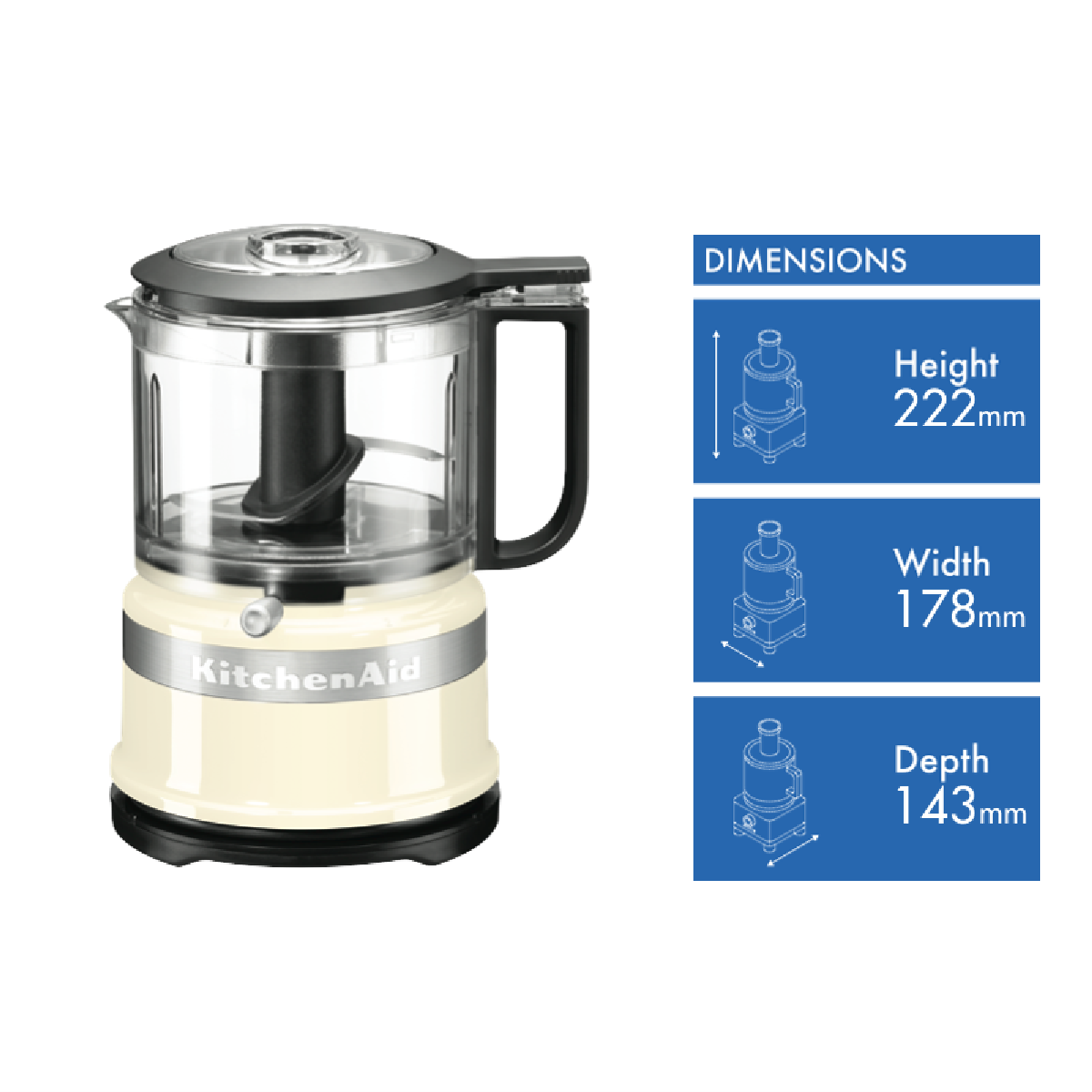 Make food preparation a breeze with this KitchenAid Mini 3.5 Cup Chopper. A compact design makes the mini food processor perfect for smaller tasks while also minimising clean up time. The simple one-touch operation is perfect for quickly dicing veggies or whipping up dressings.