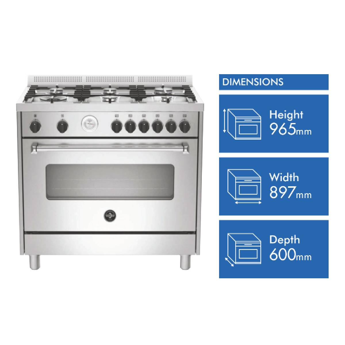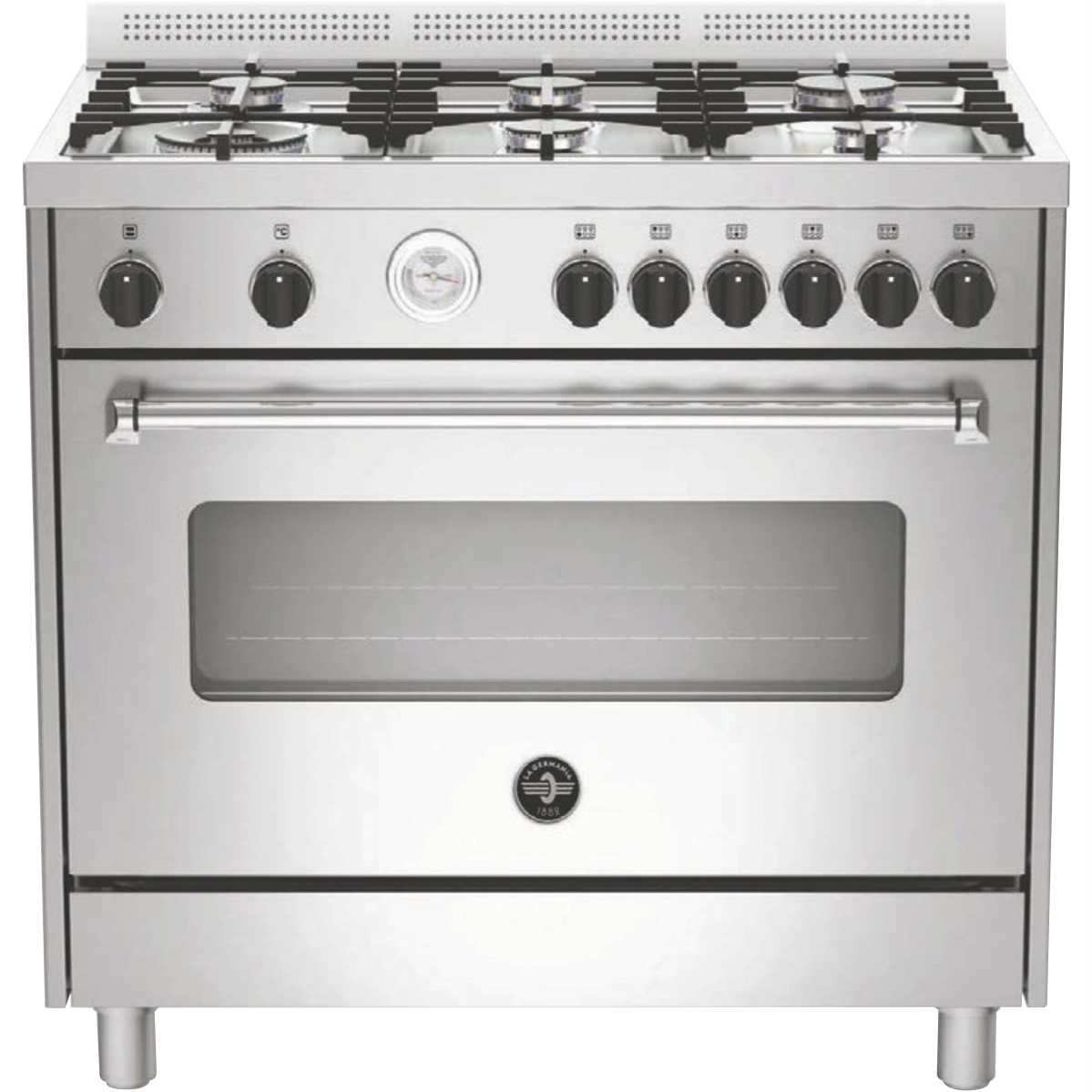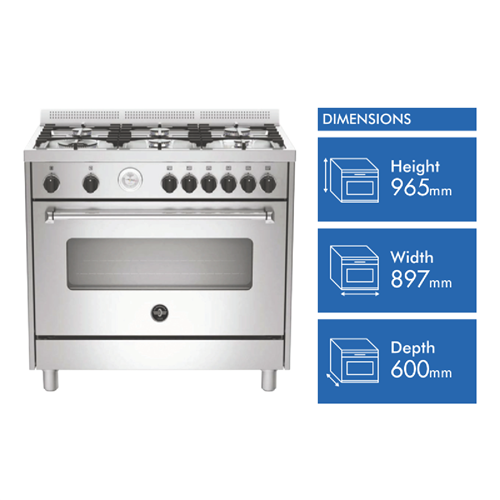 Bring a professional touch to your kitchen with the La Germania Americana 90cm Dual Fuel Upright Cooker. With its gleaming stainless steel finish and spacious 142L capacity this freestanding oven makes an impressive statement. Six gas burners give you the responsive precise heat control you need for simmering sauces or stir-fries while the electric oven provides even baking results across 11 functions including bake grill and convection. Triple-glazed doors keep the heat inside the oven cavity and features like fast preheating get dinner on the table sooner. This La Germania cooker offers the flexibility of gas and electric in a durable easy-to-clean stainless steel package. With a 2-year manufacturer's warranty it's built to handle years of family meals with minimal fuss. Give your kitchen a stylish efficiency upgrade with the La Germania Americana 90cm Stainless Steel Dual Fuel Upright Cooker. The manufacturer's part number for this product is AMS96C61LBX. Discover how this quality cooker can make meal prep easier.