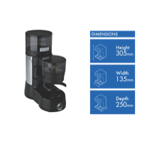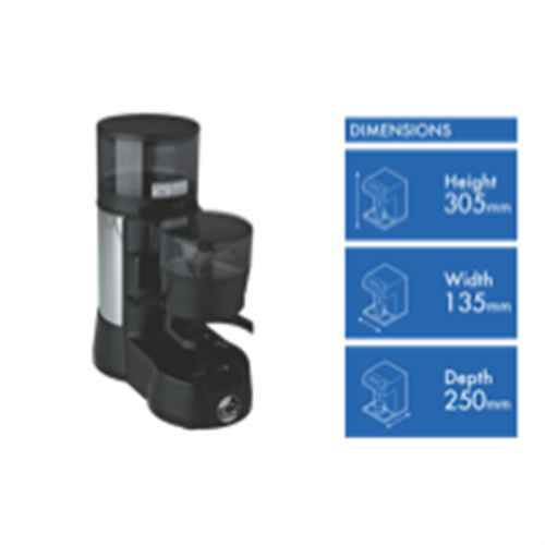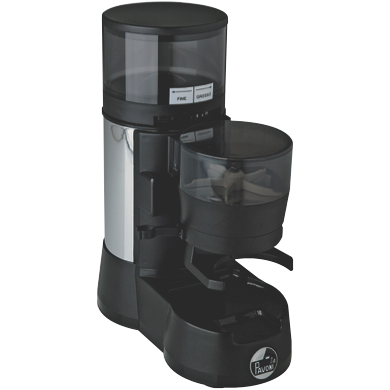 Additional Features Housed in chromed steel and plastic, Plastic bean hopper, 95 Watts, Stainless steel flat burr grinder
