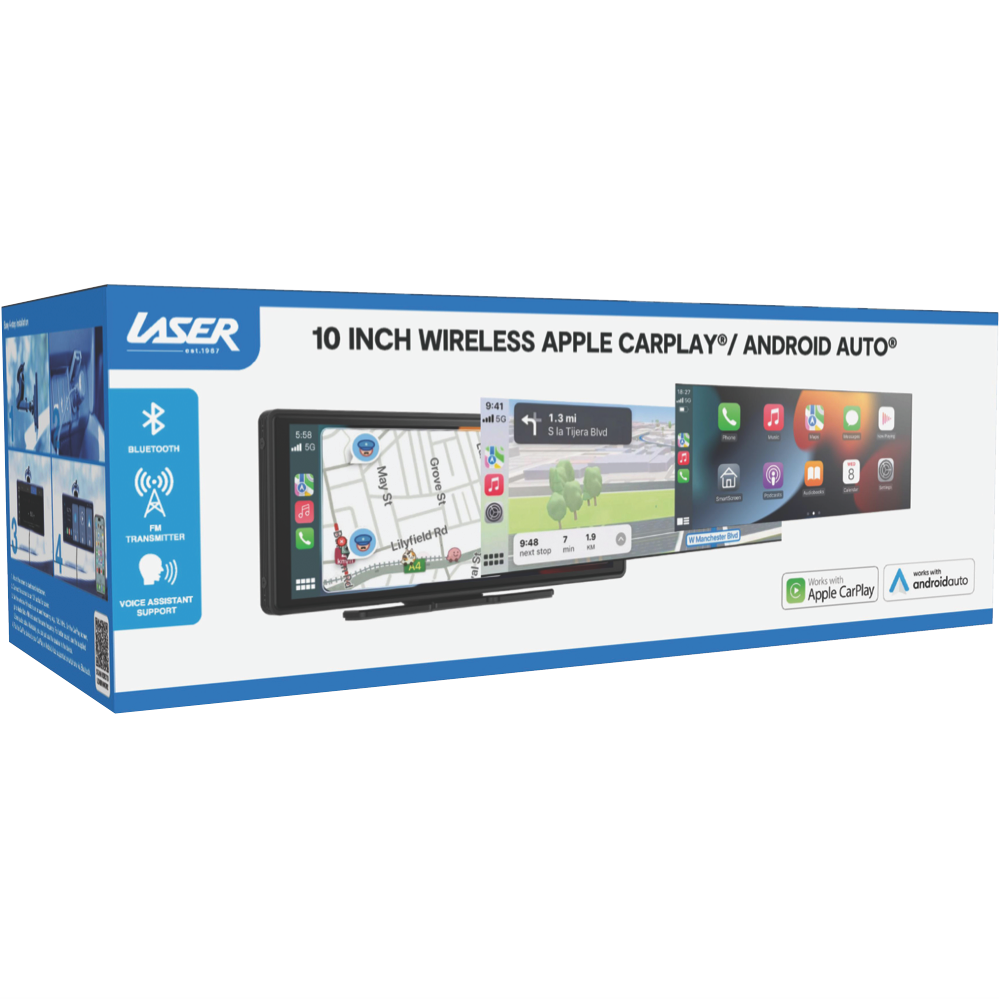 Looking for a portable way to enjoy Apple CarPlay and Android Auto in your car? The Laser 10 inch Portable Apple CarPlay/ Android Auto (NAVC-10CP-235) could be just what you need. With its generous 10 inch display this handy device lets you access your favorite apps navigation and entertainment on the go. Plus it comes with a 1 year manufacturer's warranty for added peace of mind. Whether you're commuting to work or heading out on a road trip this portable in-car GPS system makes it easy to stay connected and on track.
