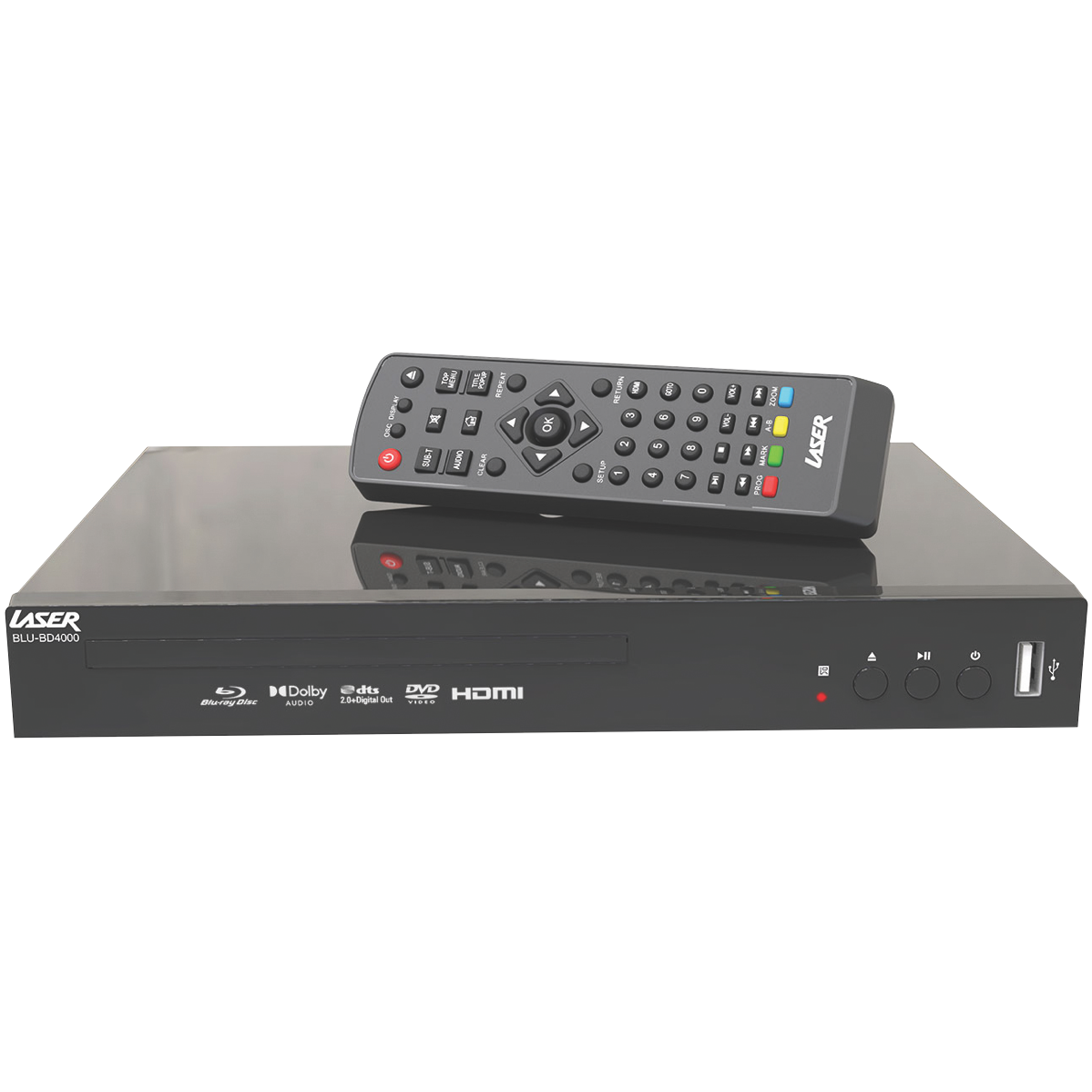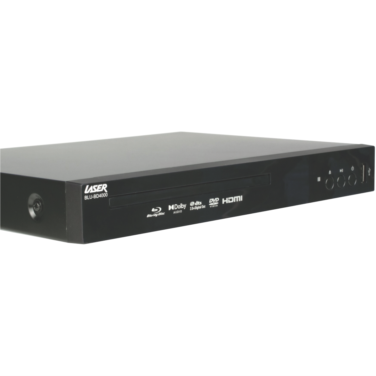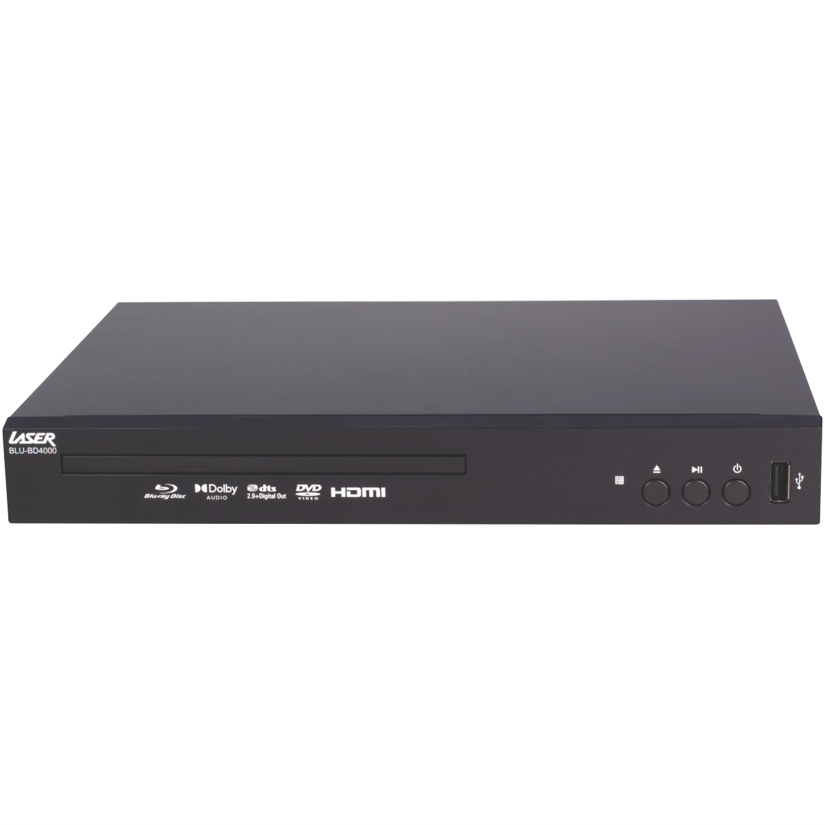 This Laser Blu-ray Player is your ticket to stunning high-definition entertainment. With its ability to play Blu-ray discs DVDs CDs and more you'll be immersed in crystal-clear video and room-filling sound. Connecting is a breeze with the HDMI output and USB port. Enjoy your favorite movies TV shows music and photos in jaw-dropping quality. The multi-region compatibility means this player works with Blu-ray discs from around the world. Keep the kids entertained without worry thanks to the handy parental lock feature. Measuring 260mm wide 40mm high and 215mm deep this compact player fits perfectly into your home entertainment setup. It decodes leading surround sound formats like Dolby Digital for an immersive audio experience. Upscale your old DVD collection to near HD quality with the built-in upscaling technology. With a generous 3 year warranty from the manufacturer you can enjoy flawless playback for years to come. The manufacturer's part number for this product is BLU-BD4000. Bring the cinema experience home with this feature-packed Laser Blu-ray Player.