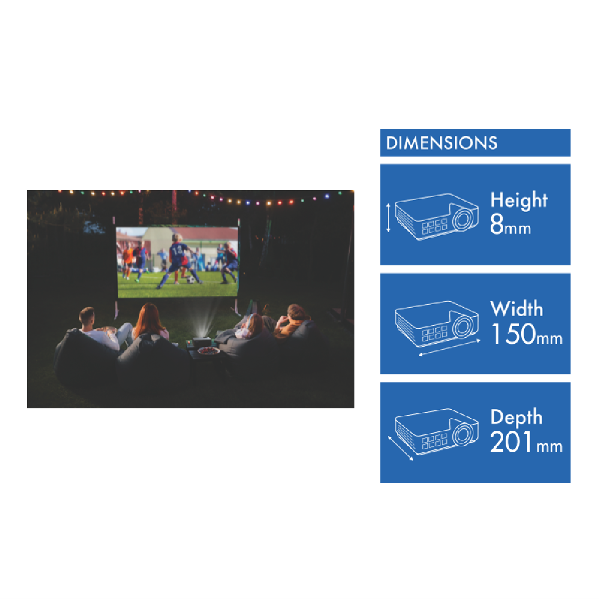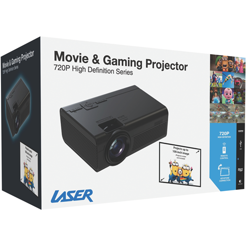 Bring your favorite movies and shows to life with the Laser HD LED Projector with Bluetooth. This portable projector delivers stunning 720p HD resolution on screens up to 100 inches making it perfect for home theaters or backyard movie nights. With 85 ANSI lumens of brightness and 16.7K color technology you'll enjoy vibrant lifelike images that draw you into the action. Plus built-in Bluetooth 5.0 lets you wirelessly stream audio to your favorite speakers or headphones. Weighing just 1.5kg and measuring 150 x 201 x 7.6mm it's easy to take this projector wherever you go. The PJ-100HD-542 comes with a remote lens cover AC power adapter and user manual backed by a 1-year manufacturer's warranty.