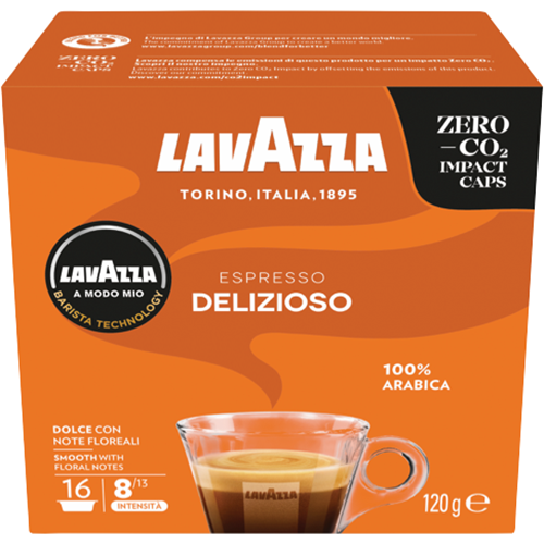 Lavazza's Delizioso Coffee Capsules 16pk 88601 will have you calling its name in no time. This skillful blend of Brazilian arabica coffees with an aroma of white grapes and notes of dried fruits is combined with sweet flowery Indian Arabica in a delicate roast. Expect a sweet aftertaste and distinctive notes of liqueur. Enjoy your cup guilt free with these capsules having their environmental impact offset by Lavazza making them Carbon Neutral.