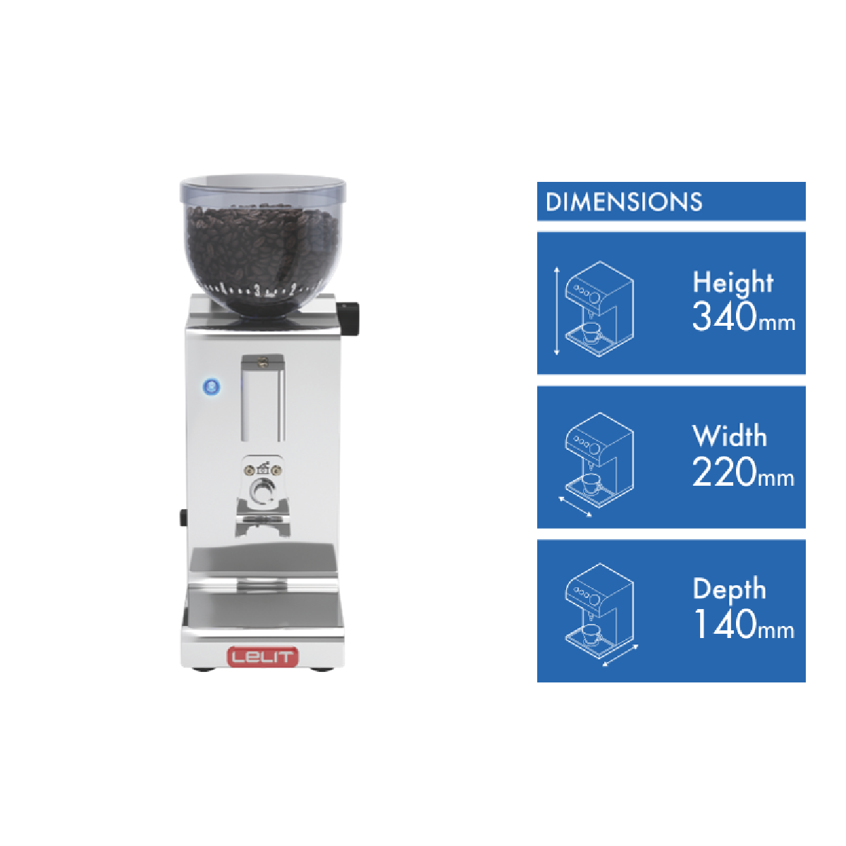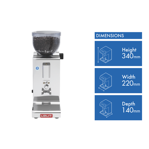 Make your morning coffee simply and elegantly with the Lelit Fred Conical Burr Grinder. This grinder is precision engineered to maximize flavor and aroma from your favorite coffee beans. The micrometric stepless adjustment mechanism allows you to dial in the perfect grind size while the 38mm hardened steel conical burrs ensure uniform grinding for optimal extraction. With its durable stainless steel body the Lelit grinder is built to last in any coffee lover's kitchen. Programmable timed dosing lets you get the exact amount of grounds you need adjustable in half second increments. The removable 250g tinted bean hopper keeps your beans fresh. Measuring 340mm high by 220mm wide by 140mm deep and weighing 3.1kg the Lelit Fred brings sleek Italian espresso grinder design to your countertop. Backed by the 2 year manufacturer's warranty order the Lelit Fred Burr Grinder today and taste the difference precise grinding makes.