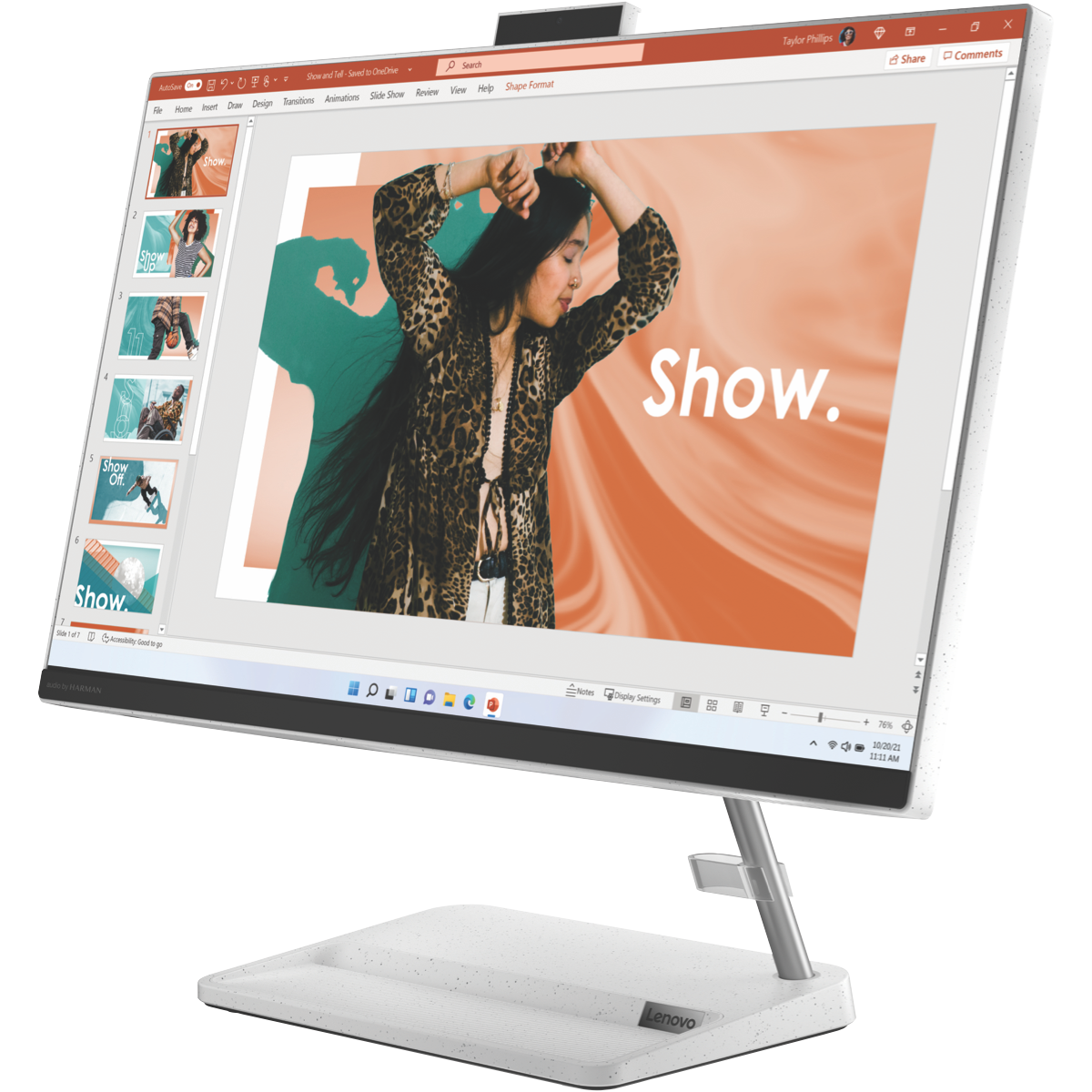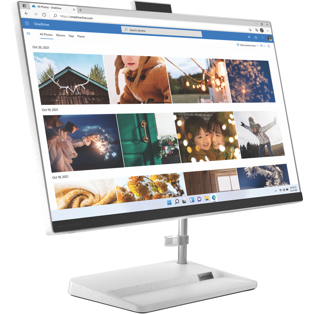 Elevate your computing experience with the sleek and stylish Lenovo IdeaCentre 3 24 All-in-One Desktop. This powerful machine boasts an Intel Core i3-1215U processor with a 3.3GHz clock speed ensuring smooth multitasking and efficient performance for your daily needs. The expansive 23.8 FHD IPS display with a 1920 x 1080 resolution delivers stunning visuals while 8GB of memory and a 256GB SSD provide ample storage for your files and applications. Stay connected with Wi-Fi 6 Bluetooth 5.2 and an array of ports including USB 2.0 USB 3.2 Gen 2 HDMI 1.4 and Ethernet. The integrated HD 720p webcam and High Definition Audio with Realtek ALC256 codec enhance your video conferencing and entertainment experiences. Running on Windows 11 Home this all-in-one desktop offers a user-friendly interface in a compact space-saving design. The manufacturer's part number for this product is F0GH012CAU. Upgrade your home or office setup with the Lenovo IdeaCentre 3 24 All-in-One Desktop and enjoy a seamless high-performance computing solution.