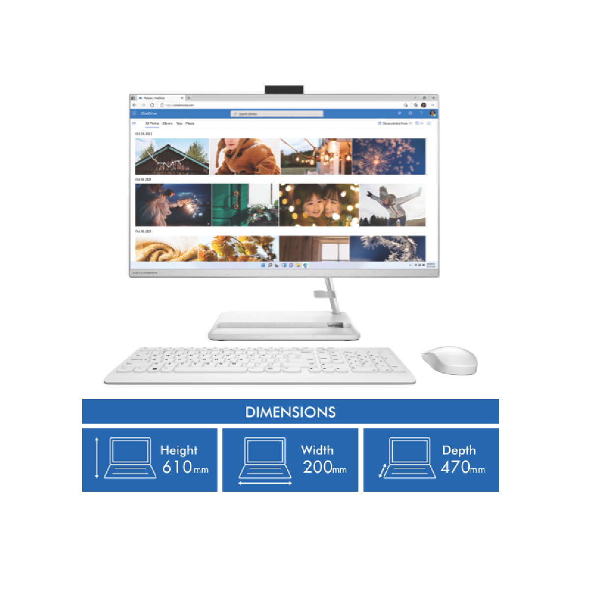 Elevate your computing experience with the sleek and powerful Lenovo IdeaCentre 3 27 All-in-One PC. Boasting a stunning 27-inch Full HD touch screen display with a resolution of 1920 x 1080 this versatile AIO computer delivers vibrant visuals and intuitive navigation. Powered by an Intel Core i7-13620H processor and 16GB of memory the IdeaCentre 3 effortlessly handles multitasking and demanding applications. With a generous 1TB of storage you'll have ample space for all your files media and programs. Stay connected with Wi-Fi 6 and Bluetooth 5.2 while the integrated 5MP webcam ensures clear video calls. Enjoy immersive audio through the 3Wx2 speakers with High Definition Audio and Realtek ALC256 codec. The IdeaCentre 3 comes equipped with a variety of ports including HDMI 1.4 Ethernet USB 2.0 and USB 3.2 Gen 2 offering flexible connectivity options. Measuring 610mm in height 200mm in width and 470mm in depth this stylish white AIO computer seamlessly blends into any workspace. F0GJ00QKAU is the manufacturer's part number for this product. Experience the perfect fusion of style and performance with the Lenovo IdeaCentre 3 27 i7 16G 1TB Touch Screen AIO.
