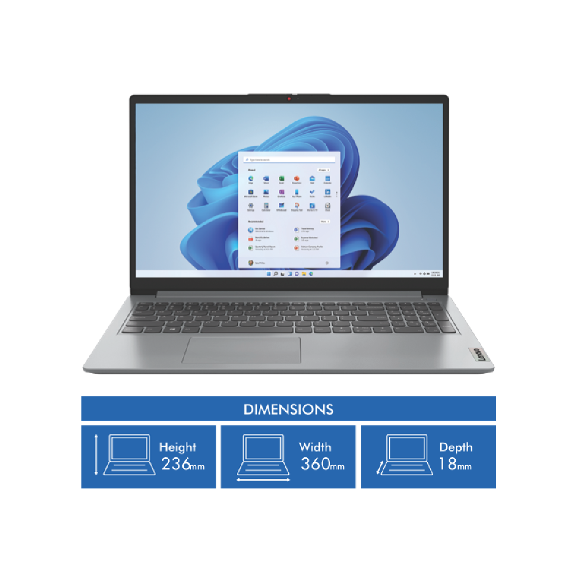 Step into a world of on-the-go productivity with the IdeaPad Slim 1 15.6 laptop from Lenovo. This sleek Cloud Grey notebook offers dependable performance for everyday tasks thanks to its Intel Pentium N6000 processor and 4GB of RAM. The generous 15.6 HD display provides vivid visuals while the 128GB of storage gives you space to save photos videos documents and more. Connect to accessories and networks via HDMI USB-A USB-C and Wi-Fi ac ports. Video chat confidently with the built-in 720p webcam that has a privacy shutter. With up to 11 hours of battery life Dolby Audio speakers and a lightweight design weighing just 1.45kg this Lenovo laptop empowers users to work stream chat and create whether at home in the office or on the move. The manufacturer's part number for this product is 82LX002CAU. Discover how the IdeaPad Slim 1 can make your life easier.