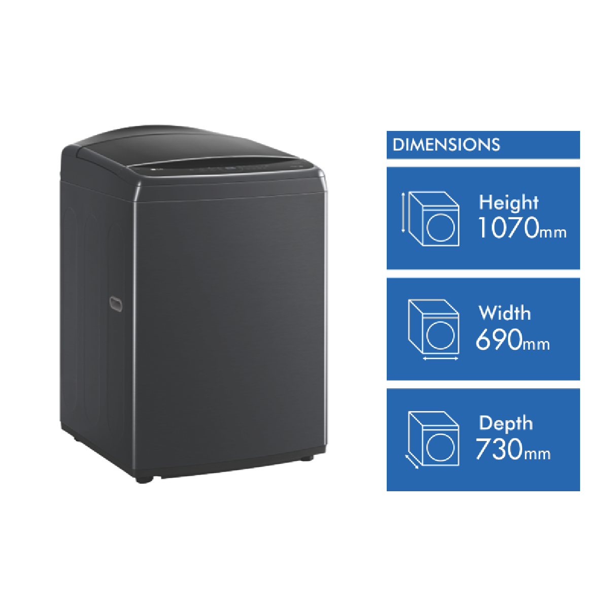Revolutionize your laundry with the LG 12kg Top Load Washer. This platinum black top loader makes easy work of even the biggest loads thanks to its spacious 12kg capacity drum and powerful 900rpm max spin speed. Packed with smart features like AI DD Intelligent Fabric Care it tailors wash cycles for optimal care of your clothes. The intuitive LCD panel and LG ThinQ app allow you to control and monitor cycles remotely. With 14 customizable programs like Eco Cotton Deep Wash and Allergy Care with Steam+ you can cater each load to your needs. Low water usage of 123 litres per wash and a 4 star WELS rating reflect LG s commitment to water efficiency. Similarly the energy efficient 4.5 star rating ensures more savings. This durable washer's 2 year warranty provides peace of mind. Give your laundry an upgrade with the convenience and customization of the LG 12kg Top Load Washer. The manufacturer's part number for this product is WTL9-12B. Discover how this washer can simplify your laundry routine today.