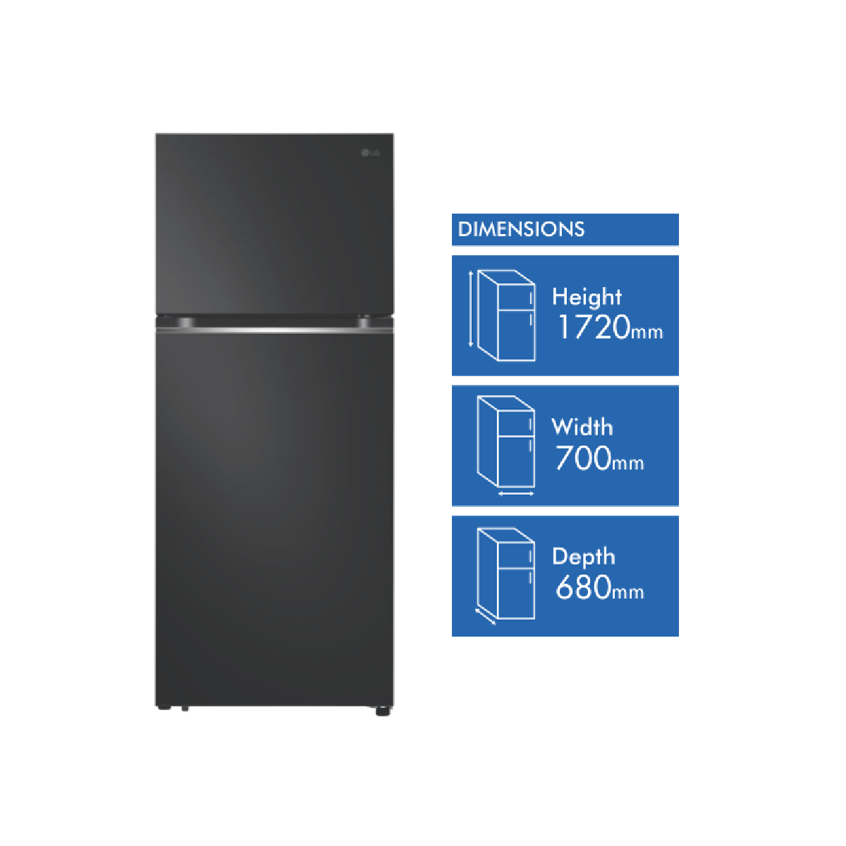 Tired of your fridge feeling a bit cramped? The LG 375L Top Mount Refrigerator (GT-5MB) could be your perfect solution. With a spacious 375L total capacity including a 285L fridge and 90L freezer you'll have plenty of room for all your fresh and frozen favorites. The sleek matte black finish adds a modern touch to your kitchen while features like DoorCooling+ Multi Air Flow and the Fresh Zone Crisper keep your food fresher for longer. Plus hidden hinges give it a seamless look. Measuring 700mm wide 1720mm high and 680mm deep it fits nicely in most spaces. Enjoy peace of mind with LG's 2-year warranty on the GT-5MB model.
