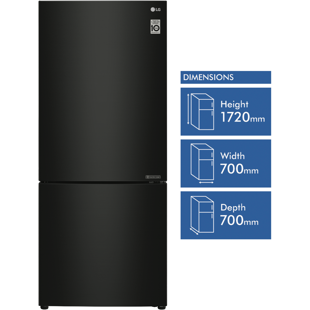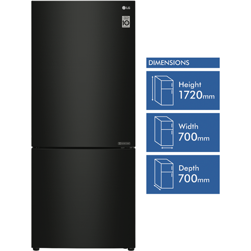 Bring sleek modern style and convenient cooling to your kitchen with the spacious 420 litre LG 420L Bottom Mount Refrigerator. This bottom freezer fridge comes in a stylish black finish that will complement any décor. With generous 420 litre total capacity including a cavernous 287 litre refrigerator and 133 litre freezer this LG appliance provides ample fresh food and frozen storage. The right hand hinged door is reversible for flexible placement while 5 star energy rating ensures excellent efficiency. Additional features like Door Cooling and Moisture Balance Crisper help keep food fresher longer. Measuring 700mm wide 1720mm high and 700mm deep with black steel finish this refrigerator delivers premium cooling and storage. Backed by a 2 year manufacturer's warranty the LG 420L Bottom Mount Refrigerator provides exceptional performance. Discover how this quality bottom freezer refrigerator can upgrade your kitchen. The manufacturer's part number for this product is GB-455BTL. Contact us today to learn more about this refrigerator.