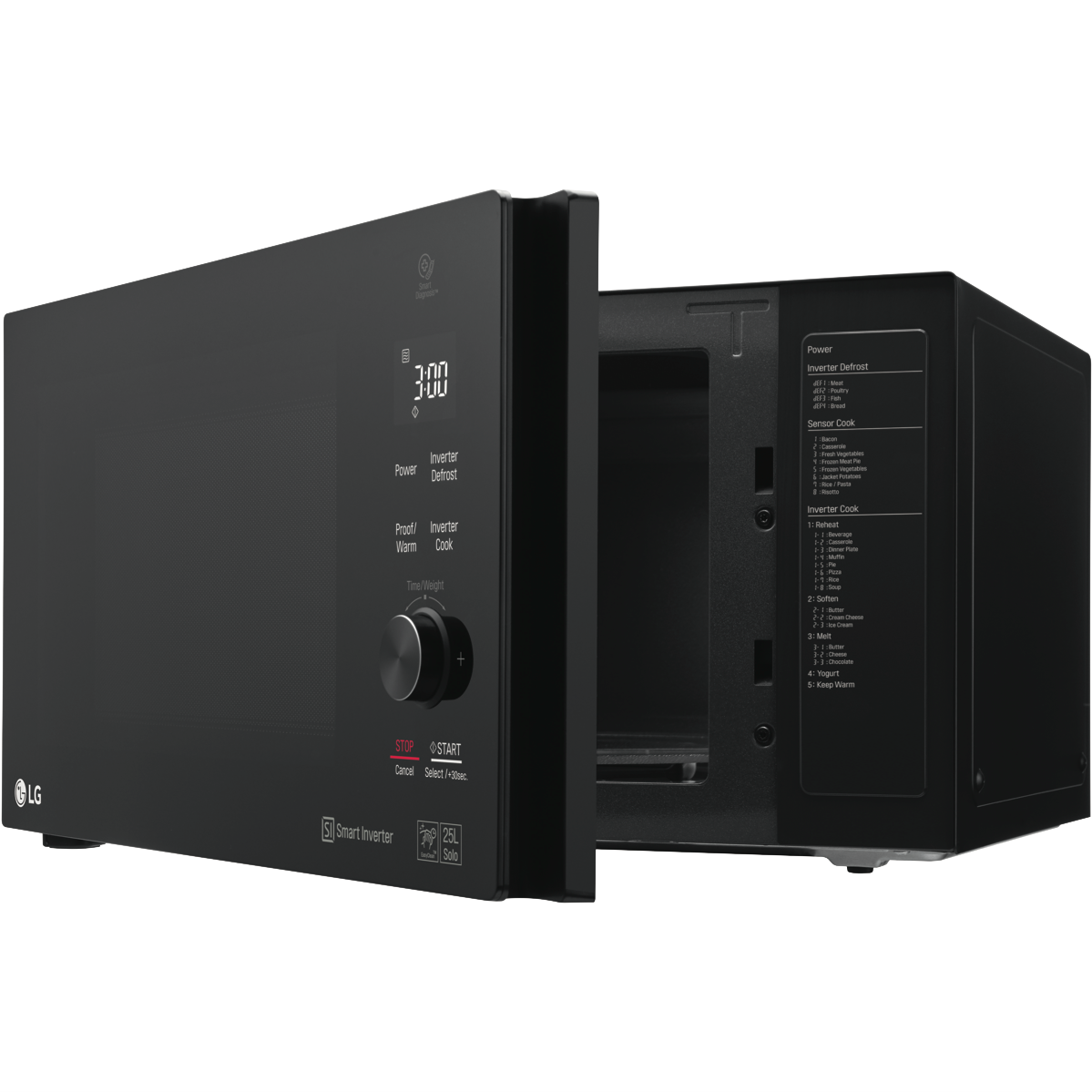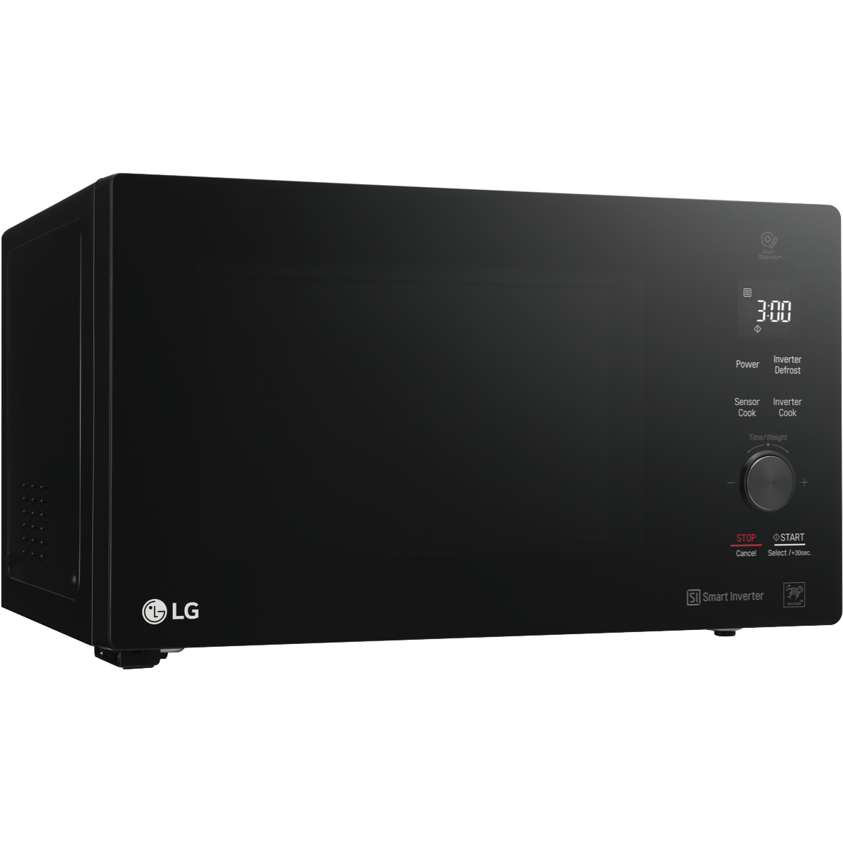 Take your microwave cooking experience to the next level with the LG 42L 1200W NeoChef Inverter Microwave. This sleek black microwave not only looks great in any modern kitchen but it also packs serious cooking power with 1200W for faster reheating and defrosting. The 42L capacity accommodates family-sized portions while LG's Inverter Technology and 10 power levels cook and defrost food more evenly. The easy-to-use touch control panel dial knob and auto cook menus make operation a breeze. With a tempered glass door anti-bacterial coating LED lighting and child lock for safety this microwave has all the features you need. Prepare quick weeknight dinners pop popcorn melt chocolate and so much more. Sensor cooking detects when food is ready. Defrost meat poultry or fish with the simple press of a button. The 360mm turntable ensures thorough even cooking. With a 2 year manufacturer's warranty you can trust that this hardworking microwave is built to last. The manufacturer's part number for this product is MS4266OBS. Bring convenient cooking capabilities to your countertop with the LG 42L Inverter Microwave today.