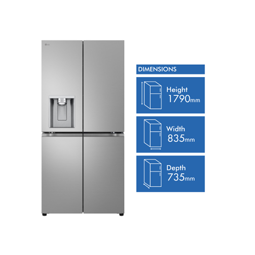 Additional Features Ice and Water (Plumbing Required), UVnano Water Dispenser, LG ThinQ, Smart Inverter Compressor, Made to fit 850mm cavity, Slim Spaceplus Ice System,