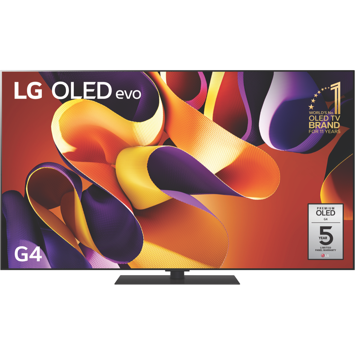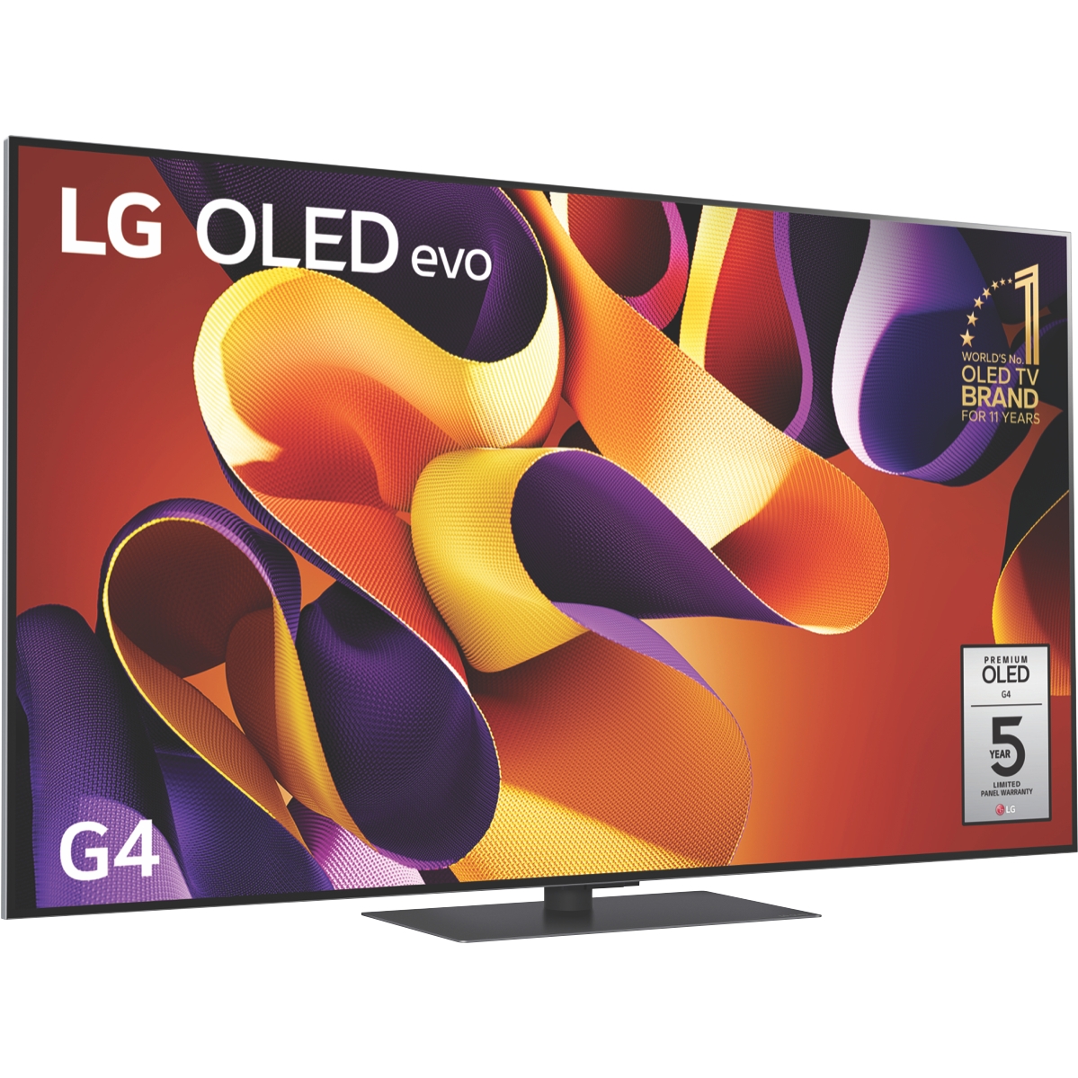 Breathtaking picture quality meets smart convenience with the LG 55 OLED 4K EVO G4 Smart TV 24. This 2024 model boasts OLED display technology for infinite contrast and perfect blacks. The 55-inch screen with 4K Ultra HD resolution provides over 8 million self-lit pixels for life-like clarity and detail. LG's latest a11 AI Processor 4K optimizes picture and sound while OLED Evo ensures boosted brightness for vibrant HDR images. Control your entertainment with built-in voice assistants access popular apps like Netflix and Youtube and game in smooth motion at up to 120Hz refresh rates. Connect devices via 4 HDMI and 3 USB inputs. Weighing just 17.9kg without the stand this slim TV can be wall mounted using a 300x200mm VESA bracket. LG backs this television with a 1 year warranty. The OLED55G4PSA is the manufacturer's part number for this product.