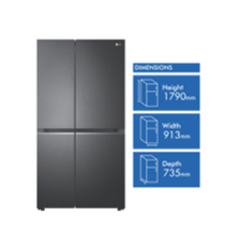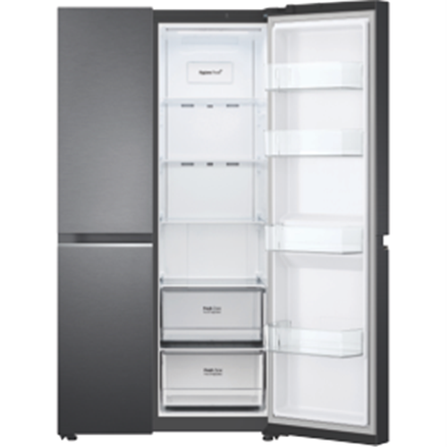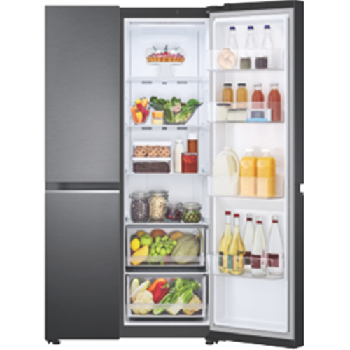 Containing an expansive interior capacity the LG 655L Side By Side Refrigerator GS-B655MBL is a fridge capable of storing food and drink for the entire family. It's vertical side by side door opening design offers easy storage and access to both the freezer and fridge compartments with customisable shelf and placement layouts. Keeping food odours from escaping the fridge is the Pure N Fresh air filtration system; odours are pushed through the carbon deodoriser via active fans then re-circulates the treated air. Your food is now fresher for longer using the SurroundCooling system which circulates cool air from both the front and back for fast and efficient cooling.