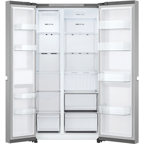 Imagine having all the space you need in one sleek and stylish package. The LG 664L Side By Side Refrigerator (GS-B599PL) offers a generous 664L total capacity with 423L dedicated to fresh food and 241L for frozen goods. You'll love the convenience of the dual door hinge design and the energy efficiency of the 5-star rating. Plus with smart features like the inverter compressor Multi Air Flow and Express Freeze your food will stay fresher for longer. The flat door design in stunning stainless steel will be the star of your kitchen. Model GS-B599PL comes with a 2-year manufacturer's warranty for added peace of mind