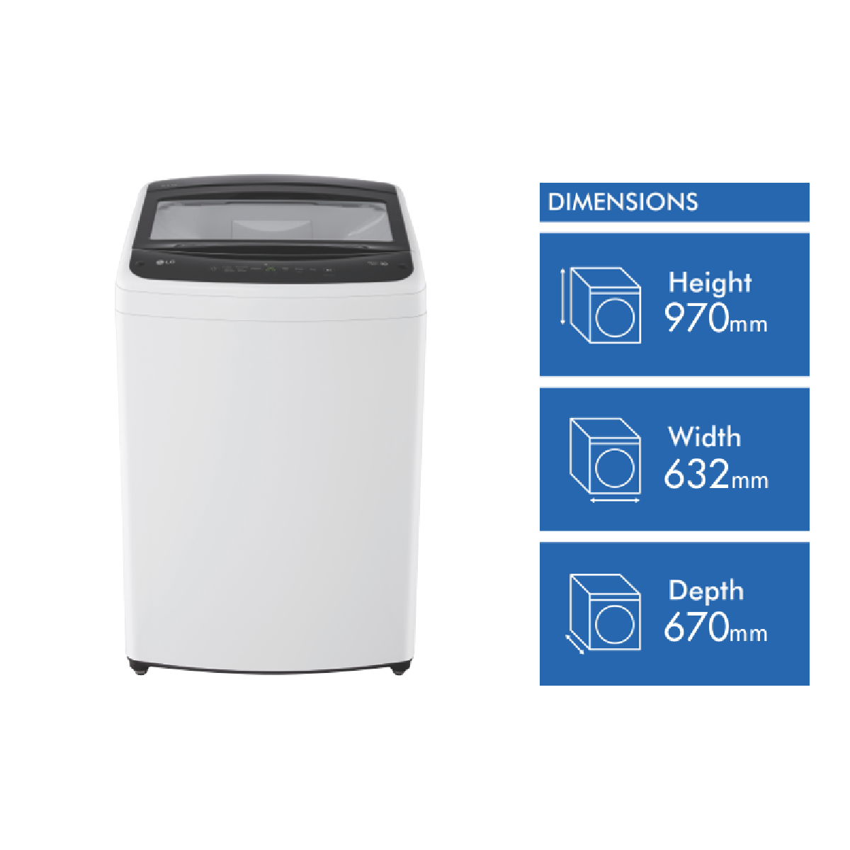 Tired of lugging around heavy wet clothes? The LG 8.5kg Top Load Washer (WTL1-85W) is here to make laundry day a breeze. With its spacious 8.5kg capacity you can tackle more in fewer loads. The Smart Inverter Control ensures quiet efficient operation while the Turbo Drum gets your clothes cleaner faster. Choose from 6 wash programs like Delicates Duvet Quick Wash and more to suit any fabric. Plus handy features like the Soft Closing Door Child Lock and End of Cycle Signal add convenience. In a sleek white finish this 4-star energy rated washer measures 632(W) x 970(H) x 670(D)mm. Enjoy peace of mind with a 2-year manufacturer's warranty.