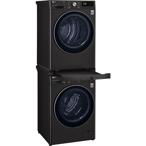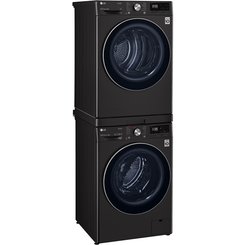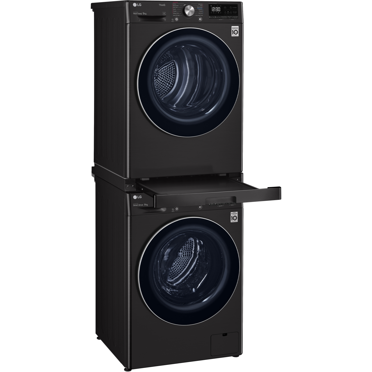 Bring your laundry room to new heights with the LG Stacking Kit. This convenient black stacking kit allows you to efficiently stack select LG washing machines and dryers maximizing your laundry space. With dedicated models like the WV9-1412B washer and DVH9-09B dryer you can create a streamlined tower of clean laundry power. The pull out shelf provides a handy folding surface or storage while the sturdy steel frame ensures rock solid support. At 65mm high 600mm wide and 590mm deep this stacking kit is designed to securely hold your appliances together for years to come. With its sleek black finish the kit seamlessly matches your laundry duo for a unified look. For those seeking to save space and take their laundry to new heights the LG Stacking Kit is the ideal solution. The manufacturer's part number for this product is STKIT-BK. Check out the LG Stacking Kit to optimize your laundry room today.