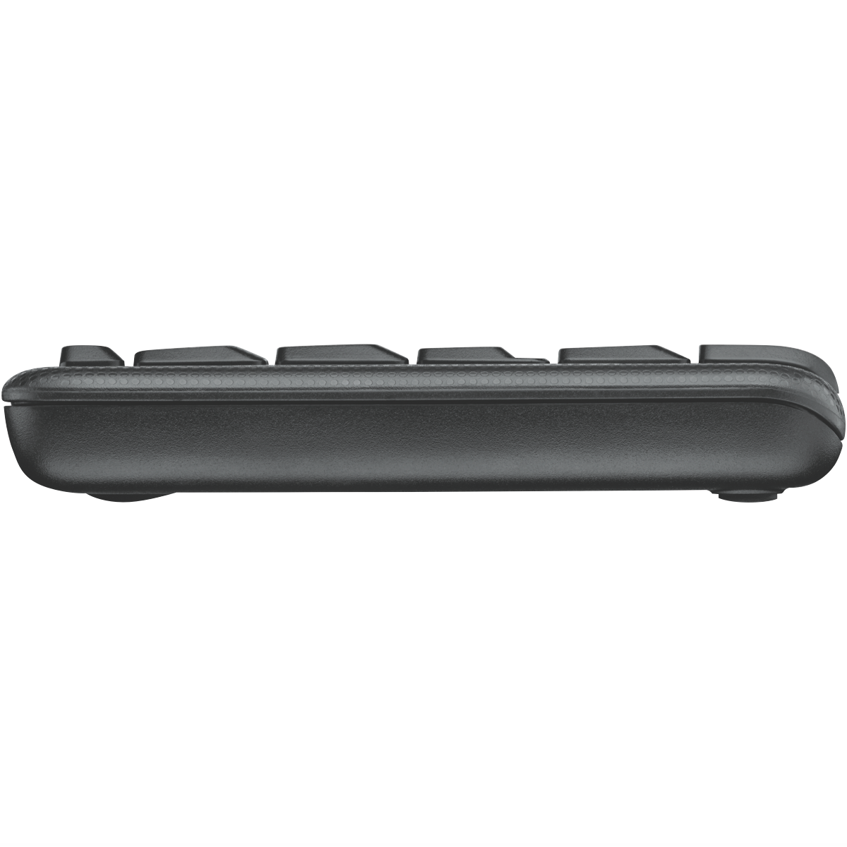 Streamline your workstation and enjoy wireless freedom with the Logitech MK220 Wireless Keyboard & Mouse. This space-saving combo pairs a full-size keyboard and optical mouse using Bluetooth connectivity eliminating cable clutter while providing comfortable typing and smooth tracking. The slim keyboard features membrane key switches allowing for quiet yet responsive keystrokes. Meanwhile the contoured mouse rests comfortably in your hand and tracks precisely on a variety of surfaces. Both devices are powered by included batteries with the keyboard lasting up to 24 months and mouse up to 12 months per set. Measuring just 17.78mm thin the keyboard slips easily into a bag or drawer when not in use. For added convenience a USB receiver stores inside the mouse and lets you set up in seconds. With a 3 year manufacturer's warranty this wireless keyboard and mouse bundle delivers convenience and reliability for your home office or workspace. The manufacturer's part number for this product is 920-003235. Give your desk a streamlined look while enjoying the freedom of wireless with the Logitech MK220 keyboard and mouse.