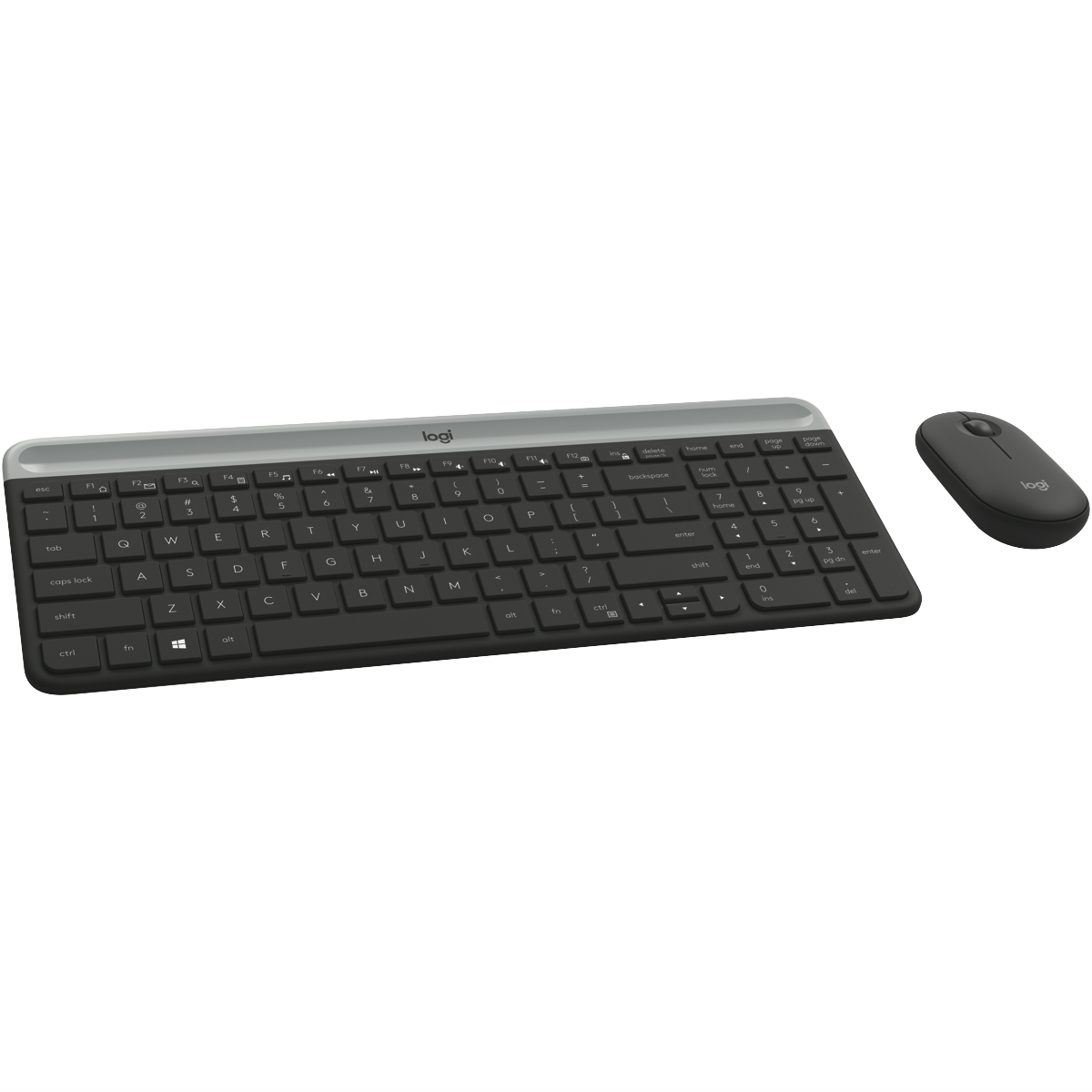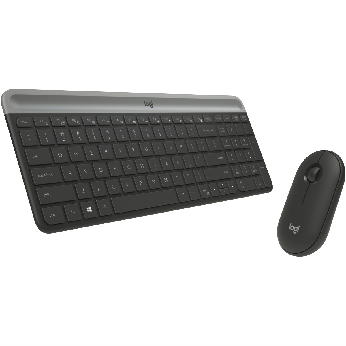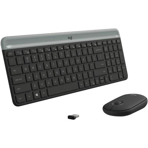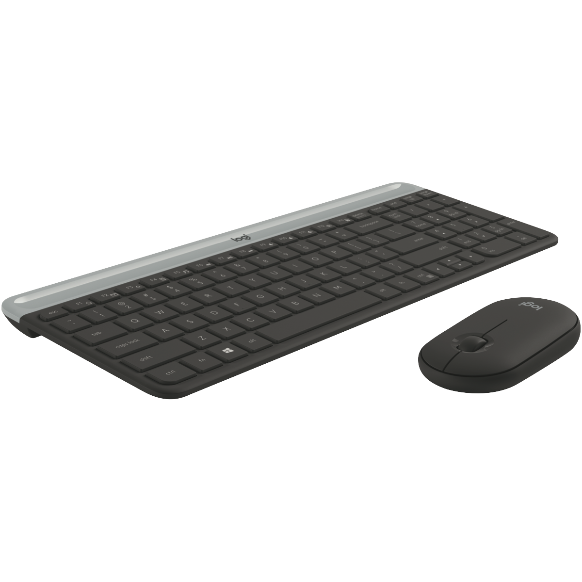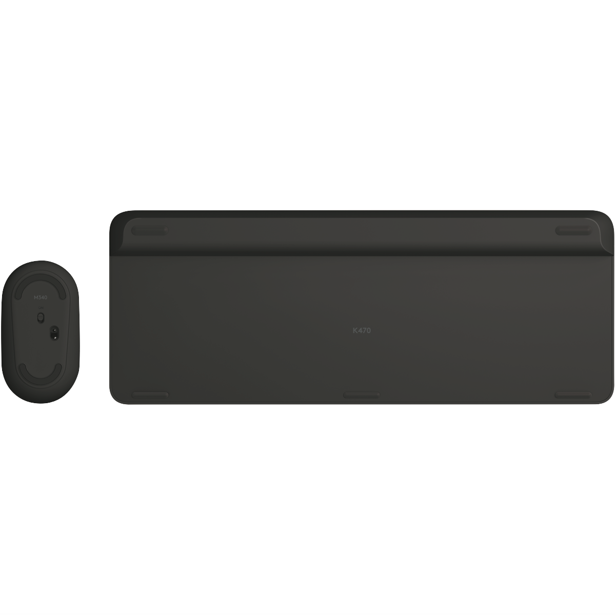 Stay connected with this Logitech wireless keyboard and mouse combo. The compact MK470 delivers quiet comfortable typing and smooth precise mousing in an affordable space-saving design. Enjoy the freedom of wireless operation via Bluetooth connectivity with up to 18 months of battery life on a single set of AA batteries. The slim lightweight keyboard features whisper-quiet membrane keys while the contoured mouse fits comfortably in your hand. Use them together or separately - the tiny Logitech Unifying receiver stays in your laptop so there's nothing to lose. With a wireless operating range of up to 10 meters you'll enjoy clutter-free productivity. Logitech's advanced 2.4 GHz wireless technology ensures a reliable secure connection. The graphite finish looks professional in any home or office setting. This handy combo lets you work play and navigate with ease. Logitech supports the MK470 with a one-year limited hardware warranty. The manufacturer's part number for this product is 920-009182. Check out the MK470 for a versatile reliable wireless keyboard and mouse solution.