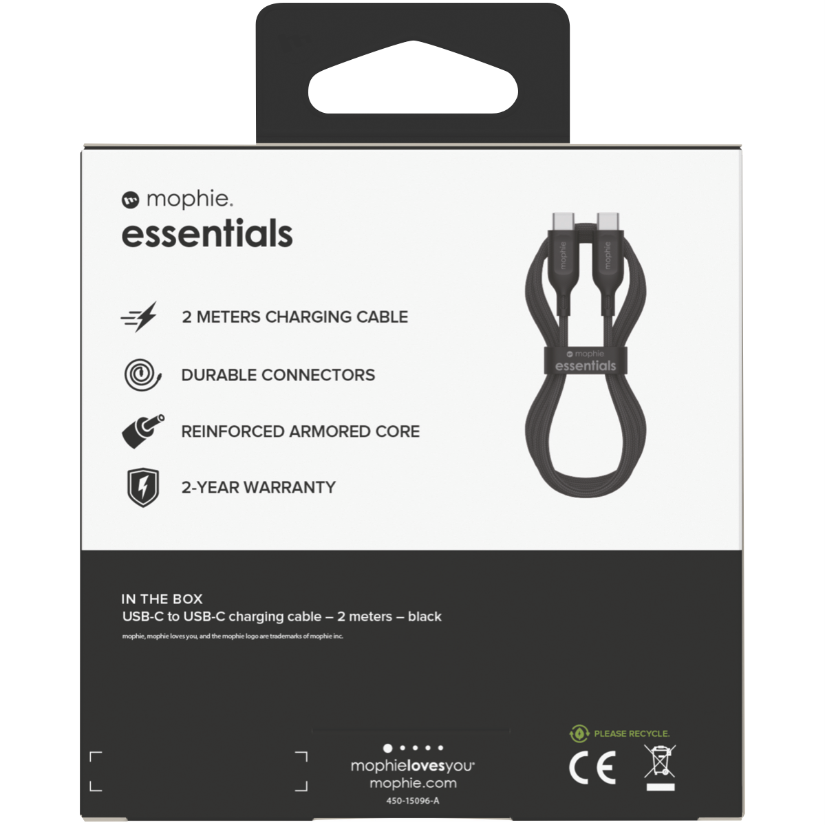 Mophie Essential USB-C-C Cable (60W) Braided 2M Black