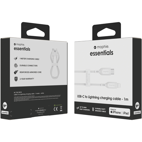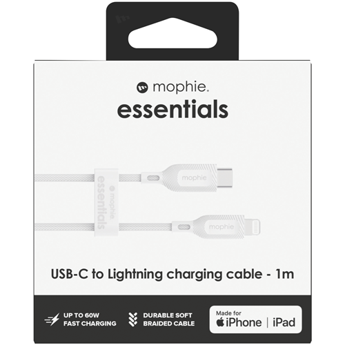 Mophie Essential USB-C-Lightning Cable Braided 1M White