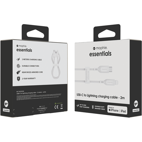 Mophie Essential USB-C-Lightning Cable Braided 2M White