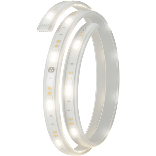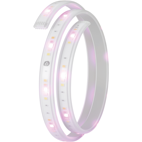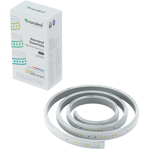 Discover the endless possibilities of ambient lighting with the Nanoleaf Essentials Lightstrips Expansion. This 1-metre smart LED strip lets you extend your system and amplify the immersive experience. With 16 million colors and 2000 lumens you can illuminate any space in your home. Control lighting effects and themes via the Nanoleaf app Apple HomeKit Google Home or voice control. Sync colors with music movies and games for extraordinary ambience. The ultra-long 25000-hour lifetime ensures this LED strip will shine bright for years. Seamlessly connect multiple extensions for larger installations. Transform spaces with color-changing backlights behind TVs under cabinets and more. This slim 20mm strip has an adhesive backing for quick and easy application. Operate remotely through the smartphone app. With universal voltage it works worldwide. Enhance and expand your smart lighting ecosystem with the Nanoleaf Essentials Lightstrips Expansion. Express yourself with color and light. The manufacturer's part number for this product is NL55-0001LS-1M. Bring ambient lighting to life in your home with Nanoleaf.
