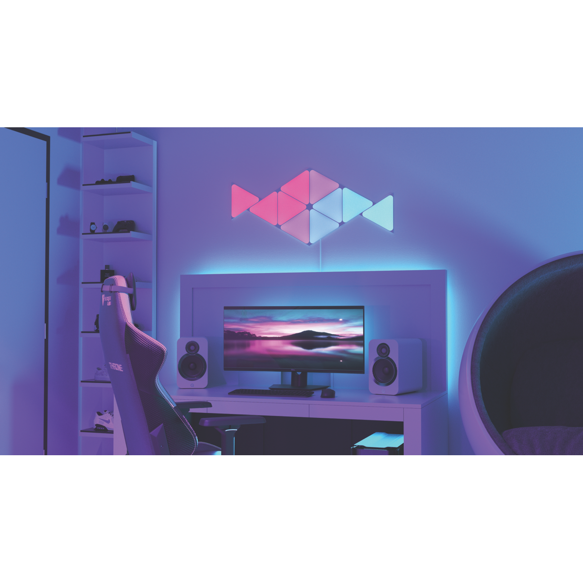 Make your home come alive with colour and creativity with the Nanoleaf Shapes Triangles Starter Kit. This smart lighting system features 15 ultra-thin LED light panels that you can arrange in any design you desire on your wall. With support for 16 million colours these WiFi-enabled light panels can be controlled via the Nanoleaf app compatible voice assistants like Amazon Alexa and Google Assistant or synced with your music movies and games for an immersive entertainment experience. Transform your living space with customizable ambient lighting that sets the mood. Mount the modular triangle panels using the included adhesive strips and connectors then take control with the app to change colours themes and brightness with ease. With a 25000 hour lifetime these innovative light panels are built to bring you joy for years to come. The manufacturer's part number for this product is NL47-6005TW-15PK. Bring creative flair to your home with the Nanoleaf Shapes Triangles Starter Kit today.