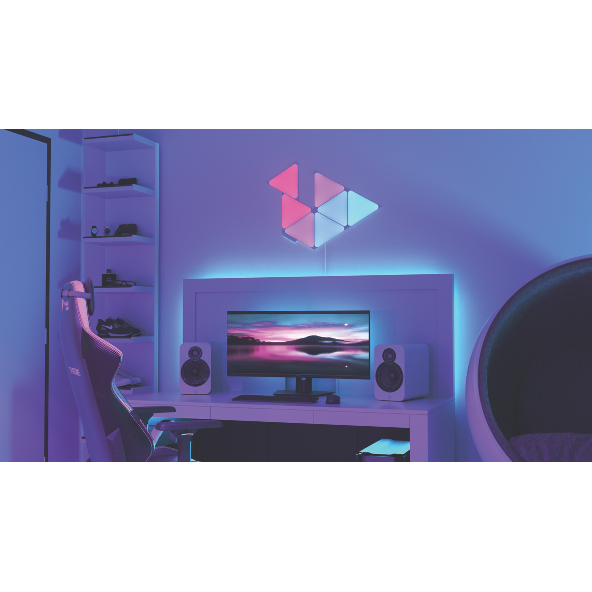 Light up your home with these versatile Nanoleaf Triangles Expansion Kit. Adding three extra panels to your existing setup opens up exciting new design possibilities. Mount the ultra-thin LED light panels anywhere imaginable with the included double-sided tape. Connect them seamlessly with the linking cords. Choose from over 16 million colors and shades to set the perfect ambience in any room. Adjust brightness up to 80 lumens. Sync lighting effects with music games and movies for an immersive experience. Control your panels through the Nanoleaf app Apple HomeKit Amazon Alexa Google Assistant or IFTTT. With a 25000 hour lifetime the energy-efficient panels provide years of vibrant illumination. The fun lighting panels liven up any space. Creativity is the only limit with Nanoleaf. Design a wall mural geometric shapes or patterns. Mount them as accent lighting behind a TV bed headboard or above a mirror. Any way you arrange them Nanoleaf Triangles add a stylish glow to your home. The manufacturer's part number for this product is NL47-001TW-3PK. Transform your space with the Nanoleaf Triangles Expansion Kit today.