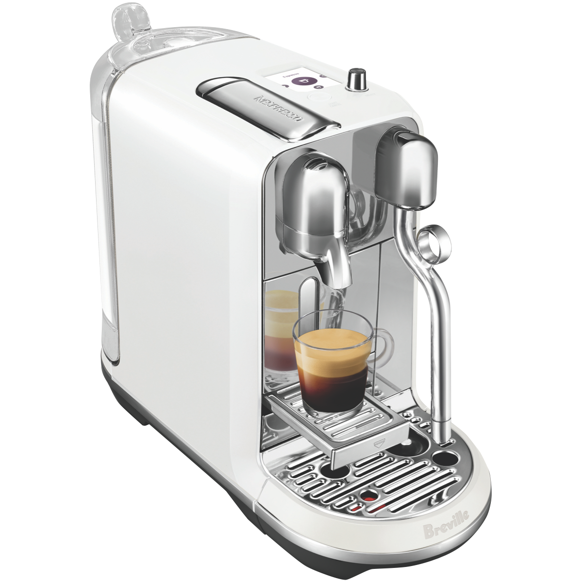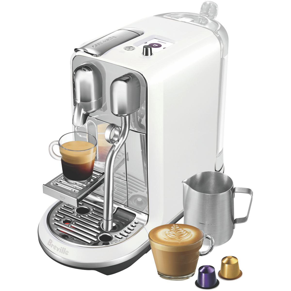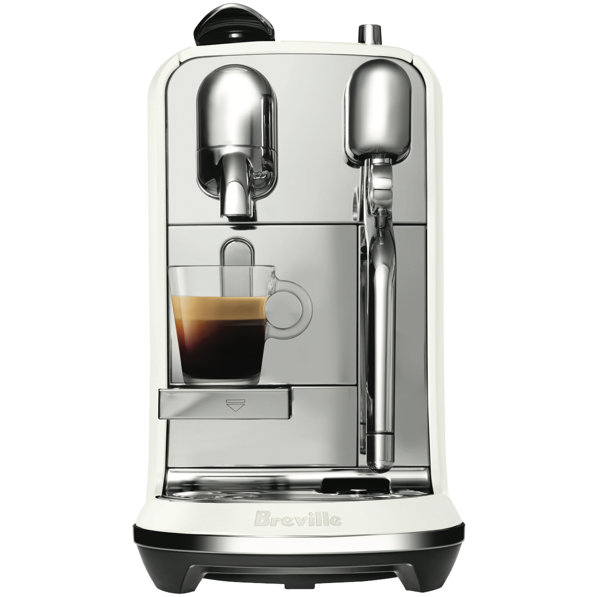Elevate your morning coffee ritual with the sleek new Nespresso Creatista Plus Sea Salt White capsule coffee machine. Craft café-quality coffee specialities in the comfort of your home with this fully-automatic stainless steel espresso machine. With 19 bars of pressure the Creatista Plus delivers rich bold espresso topped with velvety smooth milk foam at just the touch of a button. Choose from 11 different temperature settings to make your preferred single or double espresso long black latte flat white cappuccino or macchiato. The rapid 3 second heat up time means your morning brew is ready in moments. Create everything from a silky smooth latte to an airy cappuccino foam with the adjustable milk texture system's 8 settings. The intuitive TFT interface makes it easy to program your desired coffee cup size and follow the built-in recipes for 7 coffee specialities. With a 1.5 litre removable water tank fast heat up system and sliding drip tray to accommodate any cup or mug this Nespresso capsule machine streamlines your morning routine. The manufacturer's part number for this product is BNE800SST2JAN1. Bring café-quality coffee into your kitchen with the Nespresso Creatista Plus.