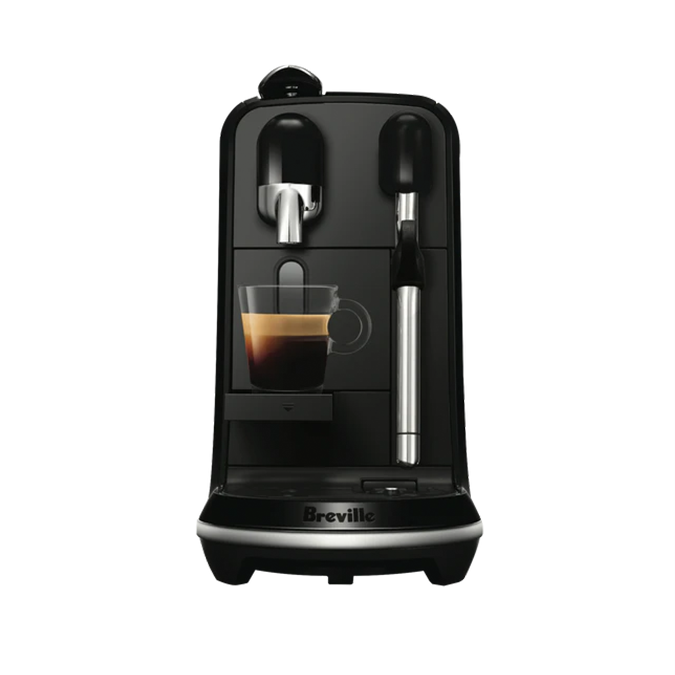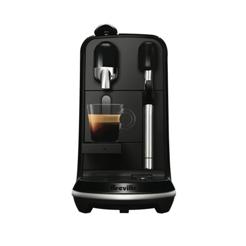 Elevate your daily coffee ritual with the sleek premium Nespresso Creatista Uno coffee machine. Craft cafe-quality coffee drinks in the comfort of your home with this innovative capsule coffee machine. With a powerful 1600W thermojet heating system it heats up in just 3 seconds and delivers barista-style coffee extraction at 19 bars of pressure. Choose from 3 cup sizes and customize your coffee with 3 milk temperature settings and 3 froth textures using the stainless steel milk jug. The intuitive interface lets you adjust water hardness and save personalized coffee preferences. This BPA free coffee machine features a compact footprint with a pop-out cup shelf allowing you to brew single serve coffees or lattes in seconds. With a 1.5L removable water tank and an auto shutoff function it offers convenience without compromising on flavor. Its sleek matte black finish and durable construction provide a modern look built to last. Enjoy the included tasting box of Nespresso capsules to experience the full flavor potential of this innovative coffee system. Covered by a 2 year warranty the Creatista Uno brings premium coffeehouse drinks to your kitchen benchtop. The manufacturer's part number for this product is BNE500BKS. Bring cafe-quality coffee into your home with the Nespresso Creatista Uno today.