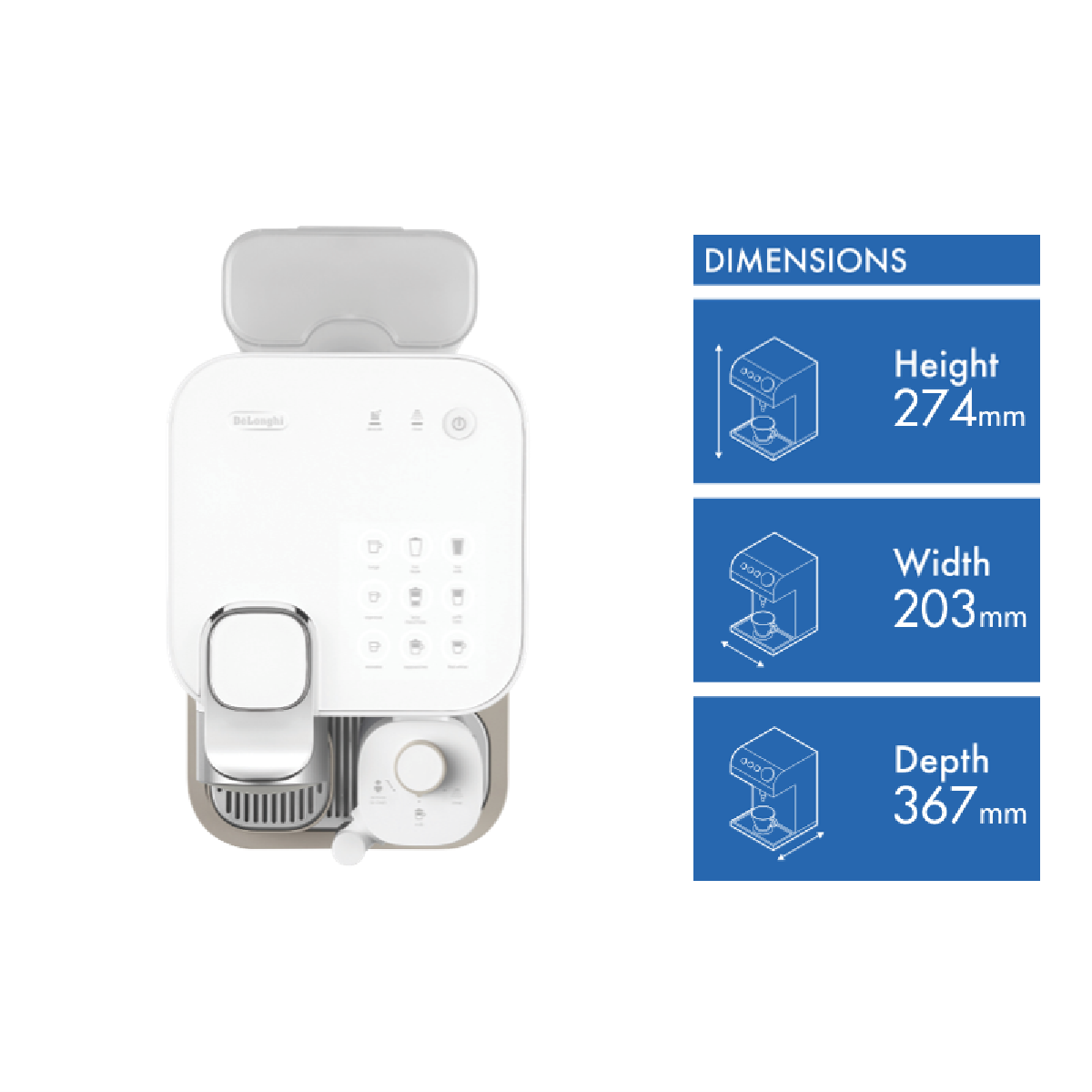 Additional Features 9 One touch recipes: Espresso (40 ml), Ristretto (25 ml), Lungo (110 ml) and 6 milk recipes for Cappuccino, Latte macchiato, Hot foam, Flat white, Caffelatte, Hot milk, Lattecrema system, Sliding drip tray, Mechanic ejection of capsules, Collecting tank f