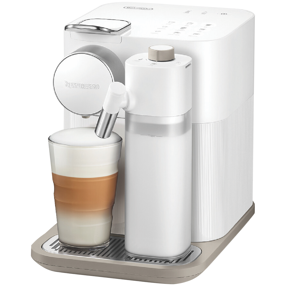 Take your coffee to the next level with the Nespresso Gran Lattissima White Automatic Coffee Machine. This sleek capsule coffee maker produces barista-quality coffee drinks with the touch of a button. The 19 bar Italian pump delivers rich full-bodied espresso topped with silky smooth milk froth. Simply pop in a Nespresso capsule and choose from 9 one touch recipes like ristretto cappuccino and latte macchiato. The rapid 25 second heat up time means you'll never have to wait long for your morning coffee. The 1.3L removable water tank sliding drip tray and auto-eject used capsule drawer makes clean up easy. Plus the automatic energy saving feature shuts the machine off after 9 minutes of inactivity. With a stylish white finish and compact footprint this coffee machine looks beautiful on any kitchen counter. Nespresso has included their LatteCrema system to deliver the perfect milk texture and aroma in every cup. For delicious coffee drinks with minimal effort look no further than the Nespresso Gran Lattissima. The manufacturer's part number for this product is EN640W. Discover the convenience of single serve coffee with Nespresso.