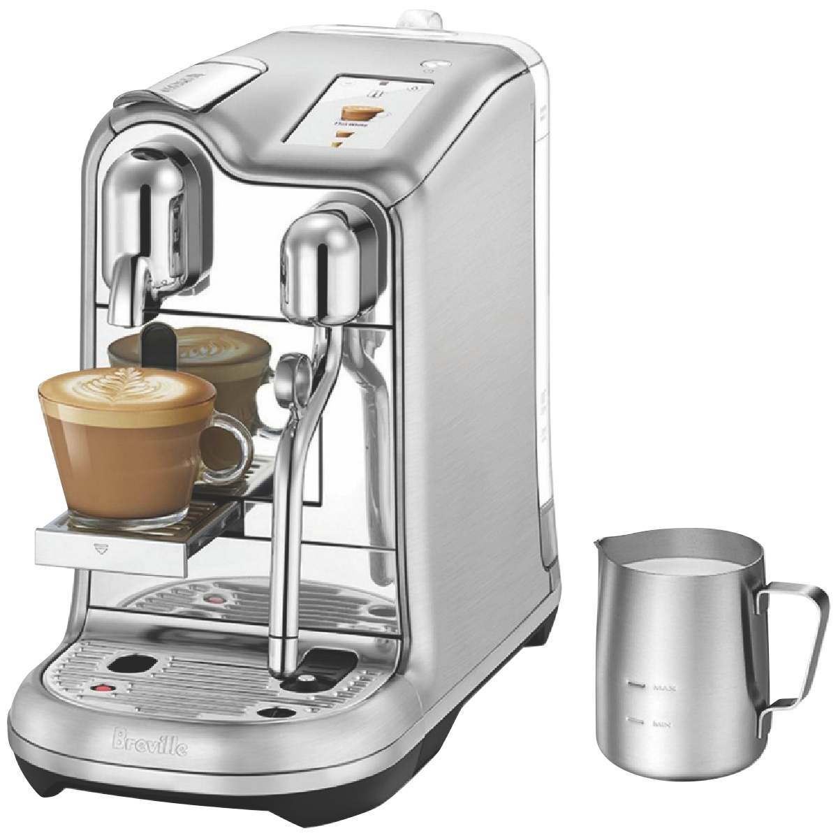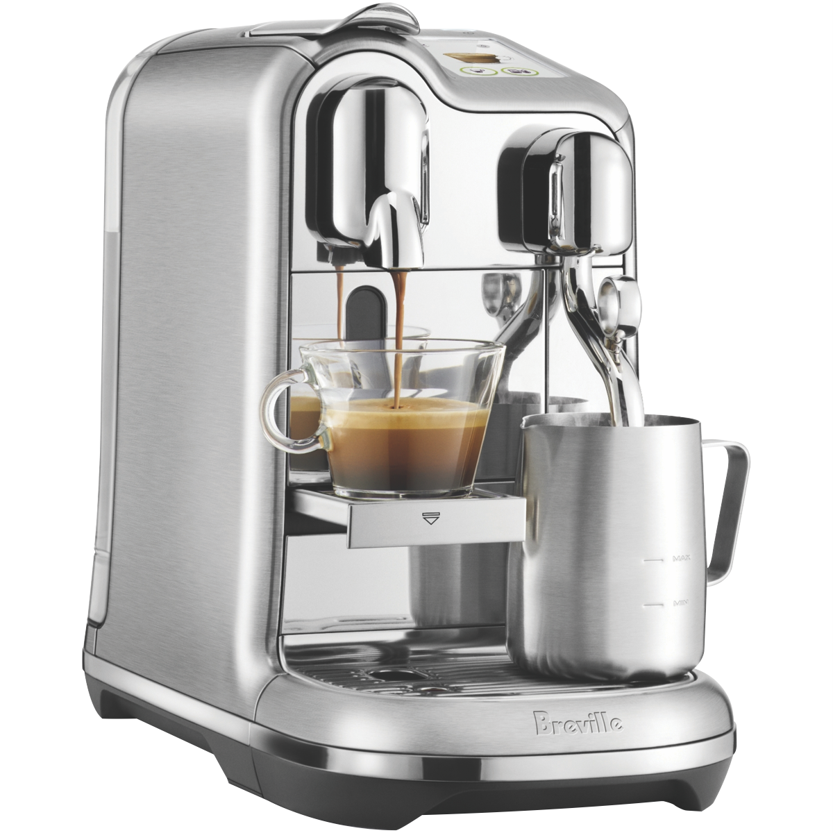 Kickstart your day with this Breville the Creatista Pro Capsule Coffee Machine BNE900BSS offering the convenience of capsule coffee with precise milk texturing for cafe quality coffee at home. With fast three second heat up simultaneous coffee extraction and customisable milk texturing you can have two cappuccinos ready to enjoy in just 75 seconds; so you and your loved ones can get caffeinated in no time. Plus the simple touchscreen operating system has intuitive technology with eight pre-set drinks and customisable drink settings for quick access to your favourite beverages. With a dedicated hot water spout for long black this Breville coffee machine offers a wide range of options suitable for all coffee lovers.