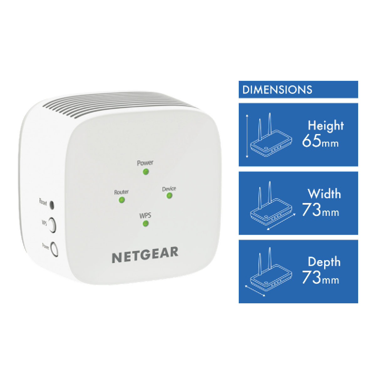 Power up your Wi-Fi and enjoy an extended wireless network in every corner of your home with the Netgear AC750 WiFi Range Extender. This dual band extender delivers speeds up to 750Mbps using both 2.4GHz and 5GHz bands simultaneously so you can connect more devices for smooth HD streaming and online gaming. Setup takes seconds with the convenient push button and the WiFi Analytics App lets you optimize your network. With a compact wall-plug design and intelligent LED signal indicator the AC750 seamlessly boosts your existing Wi-Fi coverage without hassle. Enjoy robust security with WPA/WPA2 wireless encryption to keep your network safe. For carefree expanding of your wireless coverage at speed choose the Netgear AC750 WiFi Range Extender today. The manufacturer's part number for this product is EX3110.