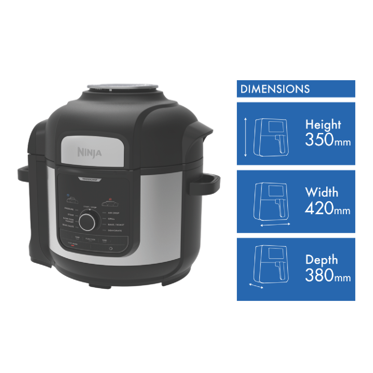 Transform your kitchen into a culinary powerhouse with the versatile Ninja Foodi Max Multi Cooker. This innovative multicooker replaces a slow cooker pressure cooker air fryer oven grill and more with 9 smart programs and cooking functions to unlock endless meal possibilities. The extra-large 7.5L ceramic coated pot and 4.7L cook and crisp basket deliver generous capacity to feed the whole family. With 1760W of power you can pressure cook juicy meats poultry and veggies up to 70% faster than traditional cooking methods. Or use the TenderCrisp lid to air fry crispy wings chips and more with up to 75% less fat than deep frying. The Ninja Foodi Max also bakes roasts grills steams and dehydrates. The intuitive mode and temperature screen makes operation a breeze. Expand your repertoire with 45 chef-inspired recipes. At 10.2kg this multicooker is still lightweight enough to move around the kitchen. The durable ceramic pot is PFOA-free and easy to hand wash after cooking up a storm. With 2 year warranty the Ninja Foodi Max Multi Cooker delivers exceptional versatility to unlock your inner chef. The manufacturer's part number for this product is OP500. Unlock your culinary creativity with Ninja Foodi Max today.