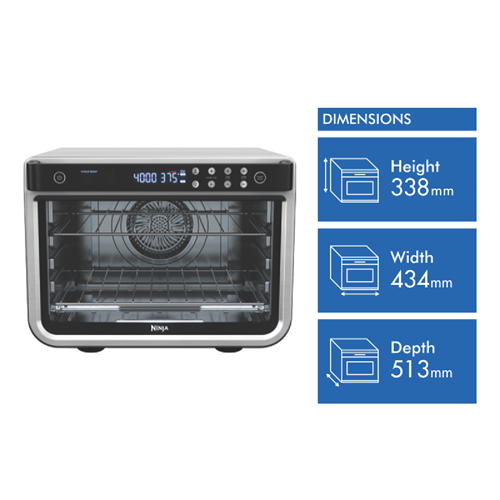 Take your cooking to the next level with the versatile Ninja Foodi XL Pro Oven. This powerful 29 litre convection oven packs a punch with 2400W of power and 10 cooking functions including air fry bake roast grill toast and more. The spacious interior fits up to a 2.3kg chicken with vegetables or two 13 pizzas while True Surround Convection and a rapid 90-second preheat get dinner on the table fast. The digital display and handle offer easy intuitive controls. Accessories like the air fry basket chrome racks and roast tray maximize your cooking options. Prepare restaurant-quality meals at home for the whole family with the Ninja Foodi XL Pro Oven. Its 29 litre capacity 10 functions and 2400W power let you air fry bake roast grill and more. True Surround Convection cooks food evenly on both levels. Fits up to a 2.3kg chicken and veggies or two 13 pizzas. The digital display and handle provide easy controls. Comes with accessories like air fry basket oven tray racks roast tray and crumb tray. The manufacturer's part number for this product is DT200. Bring the versatility of this high-powered oven into your kitchen today.