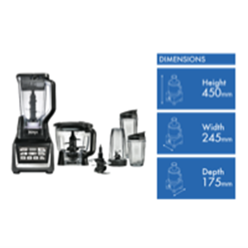 Take your blending to the next level with the powerful Ninja Nutri Blender System. This versatile 1500 watt blender features Auto IQ technology and Pro Extractor blades to effortlessly pulverize fruits vegetables ice and more into smooth nutrient-rich drinks and meals. With 3 speeds and a large 2L pitcher you can blend everything from single servings to family-sized portions with ease. The Nutri Blender includes two multi-serve cups and an array of lids so you can blend and go. Whip up sauces dips frozen drinks and more the possibilities are endless. The Nutri Blender is also great for food prep and can chop mix puree and process ingredients for recipes. Everything stacks neatly together for efficient storage. With its modern black design and range of accessories this do-it-all blender will be a welcome addition to any kitchen. Unleash your inner chef with the Ninja Nutri Blender System today. The manufacturer's part number for this product is BL682NZ.